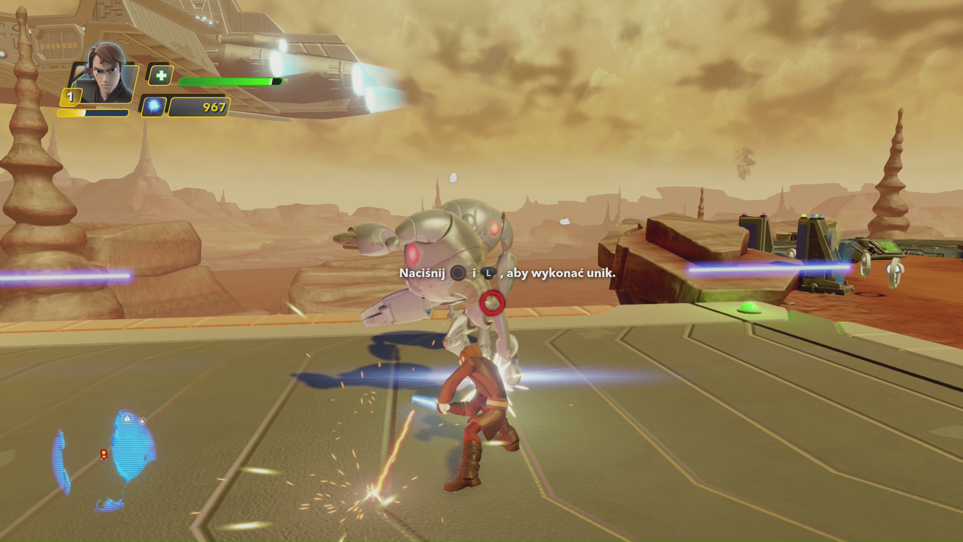Disney Infinity pomimo bycia grą skierowaną dla dzieci ma też swoją głębie. Walki na miecze świetlne nie są bardzo trudne, ale każda postać posiada własny styl i zestaw ruchów. Jak się zgłębimy w tajniki to otrzymamy całkiem przyjazny system walki. Każda figurka zdobywa też poziomy doświadczenia, które odblokowują nowe umiejętności. Gra wciąż jest prosta, aby najmłodsi sobie z nią poradzili, ale i starzy wyjadacze znajdą tutaj odrobinę wyzwania. To zdecydowanie najlepszy system walki w serii.