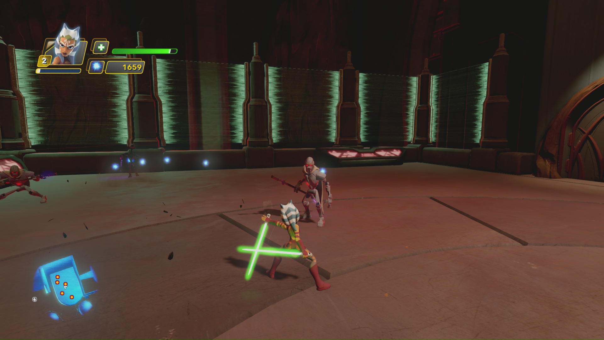 Postaci są jeszcze bardziej kwadratowe i kanciaste niż w serialu Wojny Klonów, na podstawie którego zostały stworzone. Już w telewizji bohaterowie nie wyglądali zbyt realistycznie, a teraz efekt ten jest jeszcze bardziej spotęgowany. Cóż, taka już natura gier skierowanych dla dzieci, coś w nich zawsze odstaje. Z dwojga złego wolę jednak dopracowany gameplay z brzydką grafiką niż na odwrót.