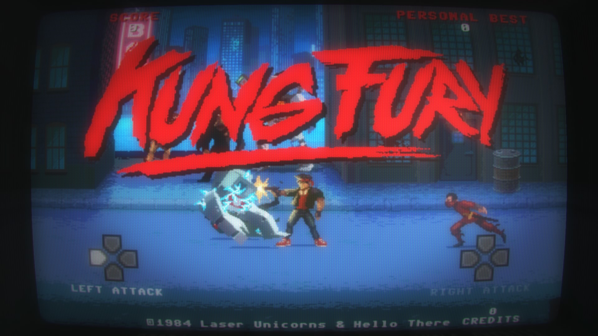 W grze sterujemy tytułowym Kung Fury i z pozoru wygląda ona jak każdy beat’em up, jednak zakres ruchów został tu ograniczony do minimum. Trudno to sobie wyobrazić, ale sterujemy tylko dwoma klawiszami odpowiadającymi za atak w lewo i w prawo, nie możemy nawet poruszać się naszą postacią. Co ciekawe atakować możemy wszystkimi klawiszami łącznie z analogami i wybrać sobie parę dla nas najwygodniejszych. Gra nie ma wymyślnych trybów, wszystko ogranicza się do jednej lokacji. Jest nią ulica, na której mijamy budynki, beczki, nasze Lamborgini Contache, plakaty z Hoffem i walczymy z niekończącymi się falami przeciwników. Napływają oni na nas z obu stron, a naszym zadaniem jest naciskanie przycisków odpowiedzialnych za konkretną z nich. Typowa gra polegająca na refleksie i zręczności, w której jeśli nie popełniamy błędów nabijamy większy mnożnik combo, dzięki czemu dostajemy więcej punktów.