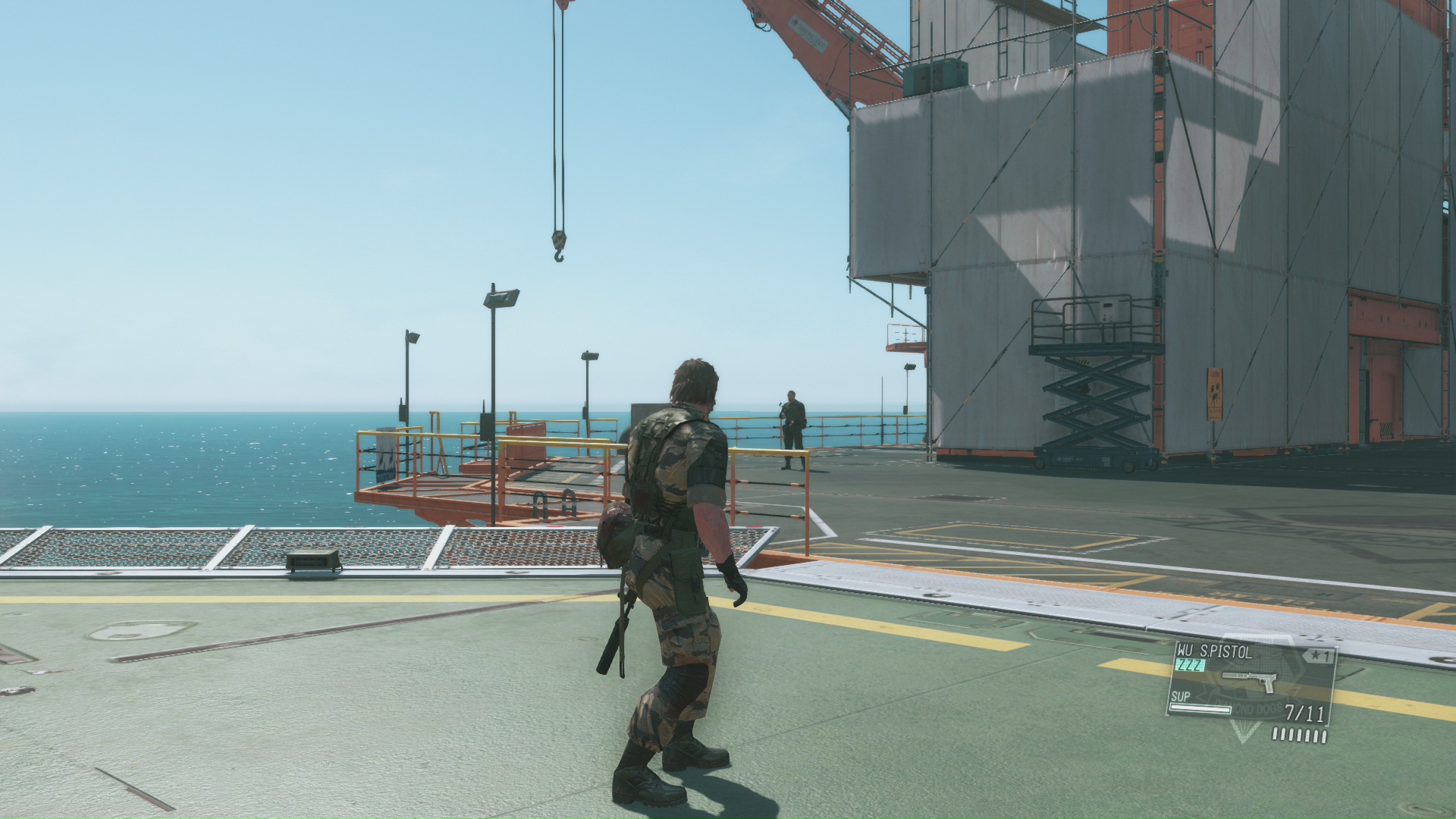 Wspomniałem przed momentem o odbudowie Mother Base. Jest to jeden z najważniejszych aspektów gry. Nasza baza umiejscowiona na platformie wydobywczej gdzieś na Seszelach jest naszym centrum dowodzenia. To tutaj będziemy tworzyć nową broń, ulepszać nasze wyposażenie, wyposażenie kompanów czy helikoptera. Naszą bazę też możemy rozbudowywać o dodatkowe platformy dla działu rozwoju, medycznego czy wywiadowczego. Do sprawnego działania Mother Base potrzebuje pracowników. Werbujemy ich z pola walki usypiając delikwenta i podczepiając do niego specjalny balon, który potem helikopter przechwyci. Każdy żołnierz na polu bitwy ma swoje statystyki i przydatny jest w innym oddziale bazy. Na początku nasze balony są bardzo słabe i przy gorszej pogodzie może nie udać się zebrać człowieka. Z czasem jednak je rozbudujemy tak, że będziemy w stanie zabrać nie tylko ludzi, ale i ciężki sprzęt, całe kontenery surowców czy pojazdy. Pracowników naszej bazy możemy potem wysyłać na różne misje, które zwiększają ich poziom. Aby odblokować kolejne ulepszenia będą nam czasem potrzebni konkretni ludzie. Np. na samym początku gry Boss nie jest w stanie przesłuchiwać sowieckich żołnierzy, bo nie zna języka rosyjskiego. Dopiero kiedy znajdziemy i przechwycimy tłumacza tego języka będziemy w stanie zrozumieć co oni mówią.
