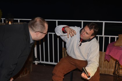 Całość prezentowała się bardzo klimatycznie, zwłaszcza teraz kiedy rzeka jest częściowo wyschnięta i barki “osiadły na mieliźnie”. Lokal zorganizowany na ich powierzchni zyskał dzięki temu pewien kąt nachylenia, co potęgowało wrażenie przebywania w wyjątkowym miejscu. Całość mogła przywodzić klimat scen z pociągiem z drugiej części lub statku z trzeciej, choć naszemu gościowi najbardziej kojarzył się z tym Ubot wystający u podnóża wodospadu z jedynki. Niewątpliwie klimat był wyczuwalny.