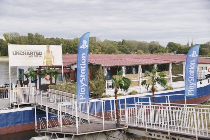 Wczoraj odbył się event promocyjny gier wchodzących w skład Uncharted: Kolekcja Nathana Drake’a. Spotkanie zostało zaplanowane w Warszawskim Multimedialnym Parku Fontann, jak się okazało to był tylko pierwszy przystanek wyprawy. Przy fontannach natknęliśmy się na stojącego Nathana Drake`a, który przekazał nam kartkę z kolejnym celem. Na odwrocie mieliśmy mapkę okolicy z zaznaczoną drogą do kolejnego punktu. Trzeba przyznać, że forma gry miejskiej bardzo się nam spodobała i zgodnie z wytycznymi podążaliśmy po zaznaczonej ścieżce w stronę Wisły. Jak się okazało naszym celem były dwie połączone barki, przygotowane w duchu trylogii.