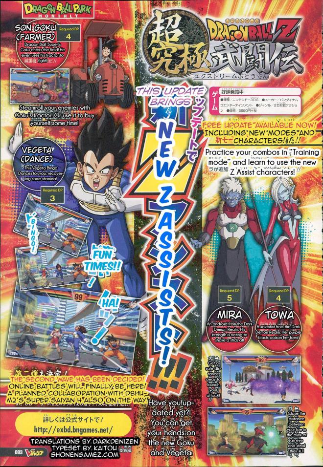 Japońskie czasopismo V-Jump ujawniło, że wkrótce będzie dostępna aktualizacja umożliwiająca bitwy sieciowe. Oprócz tego w niej znajdziemy także nowe tryby rozgrywki oraz nowe postacie. Poniżej możecie zobaczyć przetłumaczony na język angielski skan z tego magazynu.
