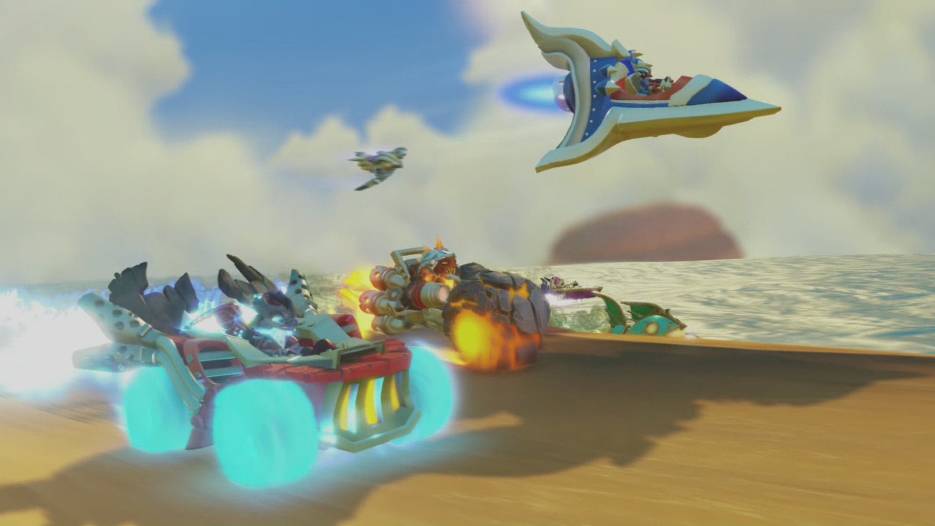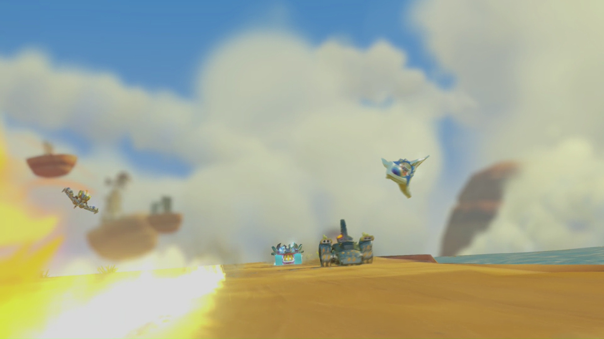 W Skylanders przechodzimy kolejne etapy. W każdym z nich znajdziemy kilka miejsc, gdzie zasiądziemy za sterami pojazdu. Niestety nie wszystkie te miejsca są dostępne w podstawowej wersji gry, gdyż wymagają pojazdu pływającego lub latającego. Oznacza to, że aby przejść wszystkie te misje musimy zakupić dodatkowo przynajmniej po jednym typie pojazdu. Oczywiście fragmenty te są opcjonalne i całą grę można przejść bez dokupywania dodatkowych figurek czy pojazdów. Niemniej jednak aby cieszyć się wszystkim co gra ma do zaoferowania musimy uzbroić się w dodatkowe figurki.