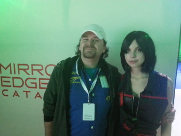 Tuż obok Halo przygotowana była też kanapa na której można było, za zamkniętymi drzwiami, obejrzeć materiały z Mirror’s Edge 2 po czym spróbować dema samej gry. W pobliżu przechadzała się kobieta w stroju Faith.