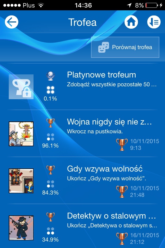 Jednak system psnprofiles.com nie bierze pod uwagę wszystkich graczy, więc zalogowałem się w aplikacji PlayStation, która potwierdziła, że wynik jest nieznacznie lepszy – 96,1%