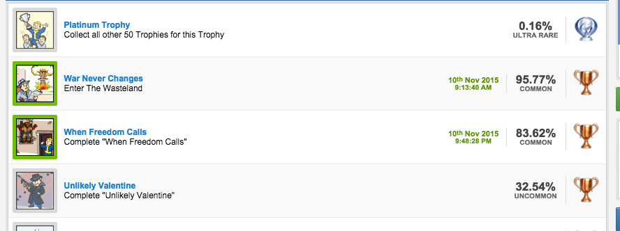 Zainspirowany tym postanowiłem sprawdzić jak sprawa ma się na PS4. W pierwszej kolejności ruszyłem na psnprofiles.com gdzie wyczytałem, że aż 95,77 % graczy opuściło schron.