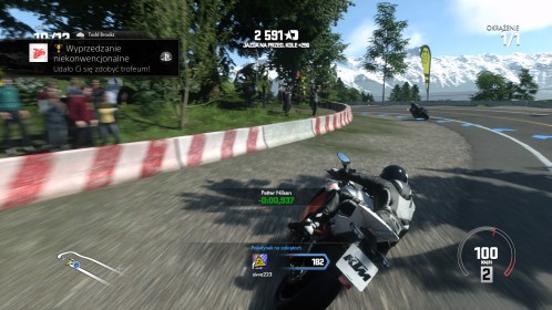 Pod względem graficznym jest pięknie, ale do tego już przywykł każdy kto miał już tę przyjemność ścigania się brykami w Driveclub. Podobnie jest też z oprawą dźwiękową. Z wielką przyjemnością słucha się ryku silników. Otoczenie jest cudowne, każdy jeden szczegół dopieszczony jest maksymalnie, co naprawdę potęguję jakość doznań, których doświadczamy podczas zabawy. Do dyspozycji twórcy oddali nam kilkanaście motocykli, z których każdy prezentuje się naprawdę oszałamiająco. Warto czasami nawet odpalić ten tytuł chociażby po to, aby podziwiać te wspaniałe maszyny, demony prędkości. Wśród jednośladów znajdą się takie maszyny jak: Kawasaki Ninja H2, Yamaha YZF-R1, Honda CBR1000RR Fireblade oraz inne modele tych producentów, a także KTM, Ducati czy Bimota. Jest w czym wybierać.