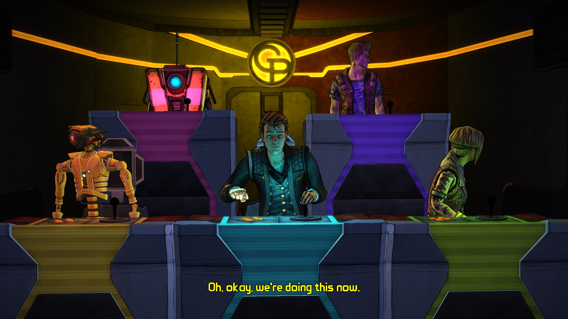 Często w przypadku komedii bywa, że zaczyna się lekko i przyjemnie, a kończy z głową pełną materiałów do przemyśleń i refleksji. Tak też dzieje się w Tales of the Borderlands. Każdy epizod posiadał coraz większy ładunek emocjonalny, ale starano się, aby nawet smutne zakończenia wątków kończyć wesołą, komediową puentą. Tyle zwrotów akcji co w ostatnim odcinku, nie doświadczymy w żadnym innym.