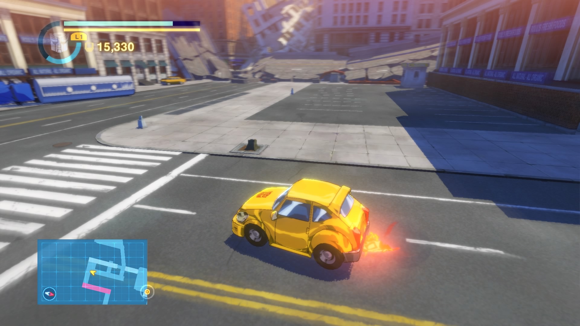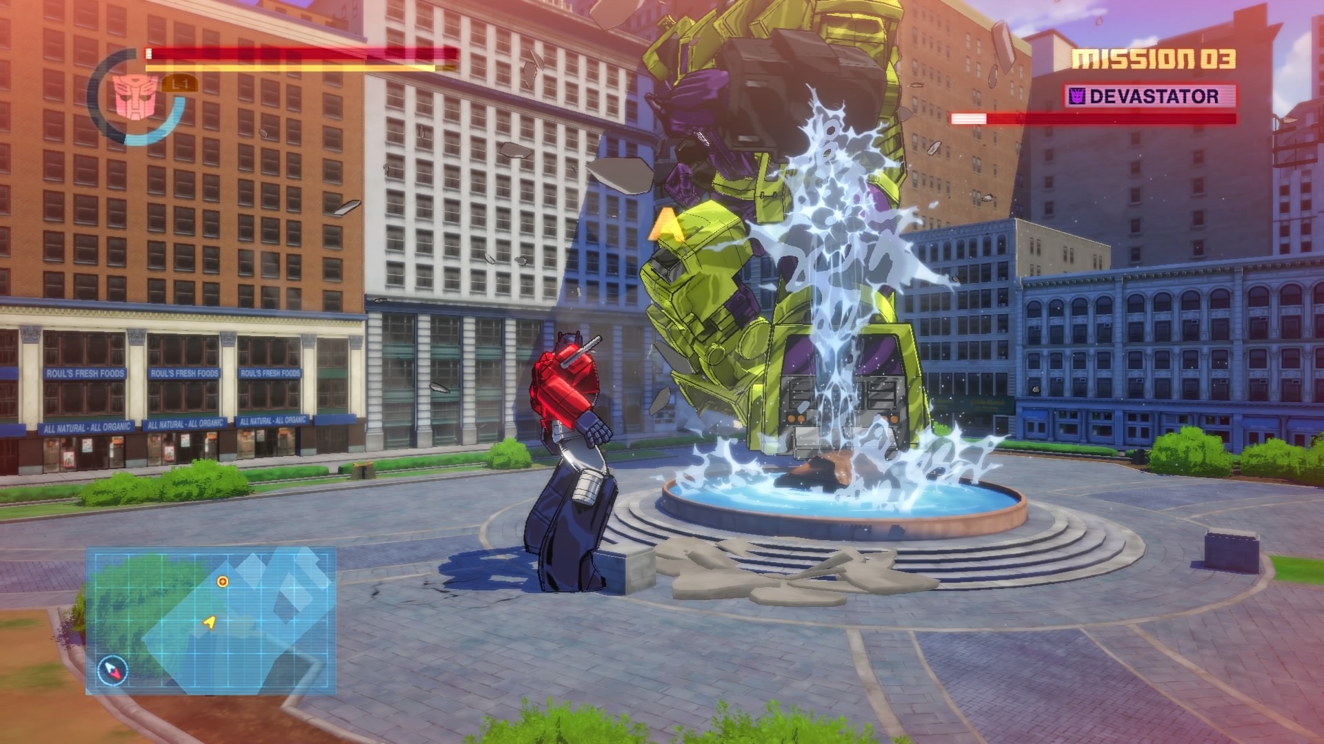 System walki można bezpiecznie uznać za satysfakcjonujący. Nie należy do tych ubogich, ale też nie serwuje nam żadnych nowości. Oprócz przyfasolenia komuś w twarz, zmieniając się w samochód, rzecz jasna. Wszystko opiera się na kombinacjach. Kwadrat to lekki atak, trójkąt – ciężki. Udane combo wymaga oczywiście świadomości. W „Transformers: Devastation” kluczem do sukcesu jest zgrabne łączenie dwóch form, jakie może przyjąć nasz bohater – samochodu i robota. W osiągnięciu ofensywnego spełnienia ma pomóc znany system uników. Jeżeli skutecznie uciekniemy przed atakiem przeciwnika, czas zwalnia i otwiera się na nasze miecze, młoty czy strzelby.