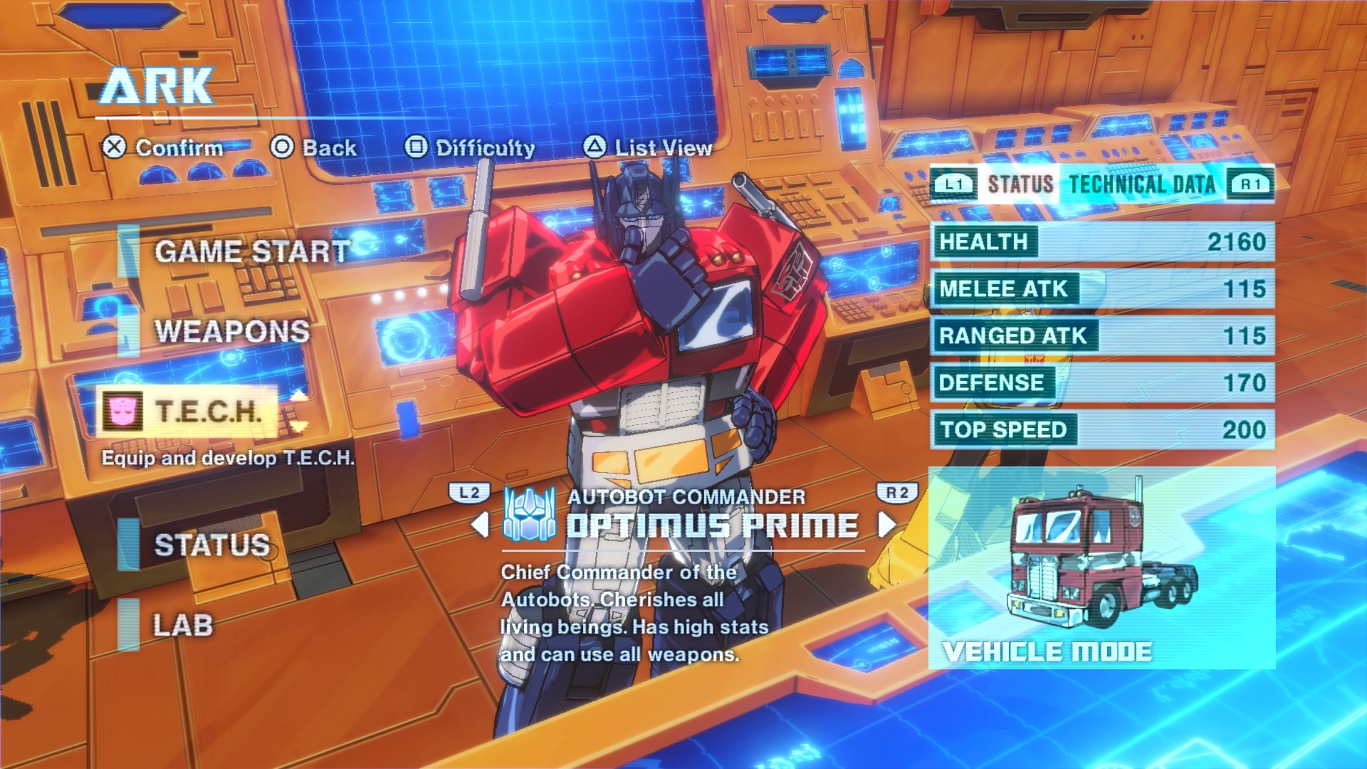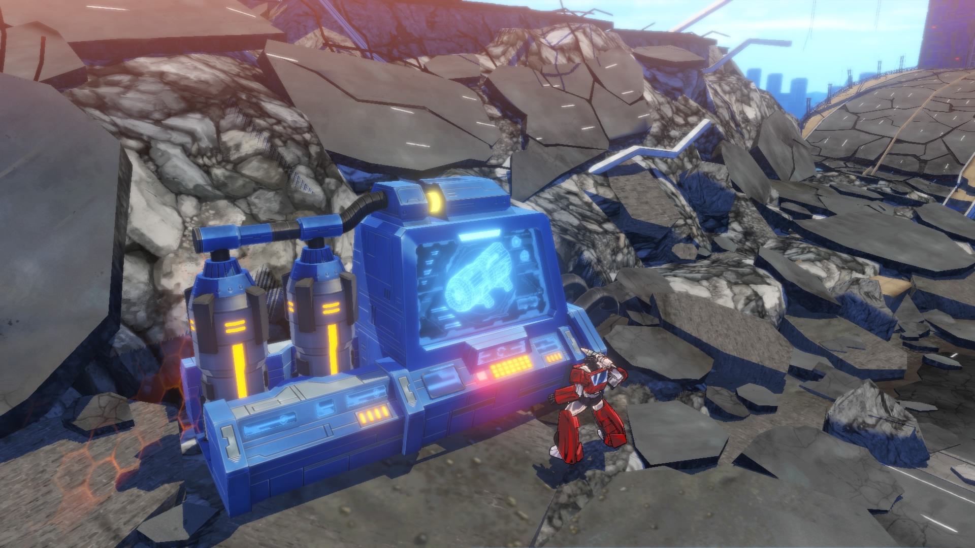Przedmioty to kolejna sprawa, która Platinum wyszła bardzo przyjemnie. Ekwipunek możemy znajdować w różnych miejscach rozsianych na mapie. Czasem natrafiamy na sprzęt przypadkiem, czasem musimy trochę poszperać. Tak czy siak, nie jest to trudne. Drugim krokiem w kwestii odpowiedniego wyposażenia bohatera jest ark – zielony punkt na mapie, nasza baza. Tam możemy ulepszać statystyki Transfomerów, kupować nowe bronie, wzmacniać aktualnie albo łączyć dwie takie same w jedną, silniejszą. Wszystko to za walutę zdobywaną podczas gry. System prosty, ale udany. Każda część ekwipunku sprawuje się bowiem inaczej, zmienia nasz styl. Możemy siekać z dwóch mieczy albo porządnie walnąć z młota, wyrzutnia granatów czy standardowy pistolet…