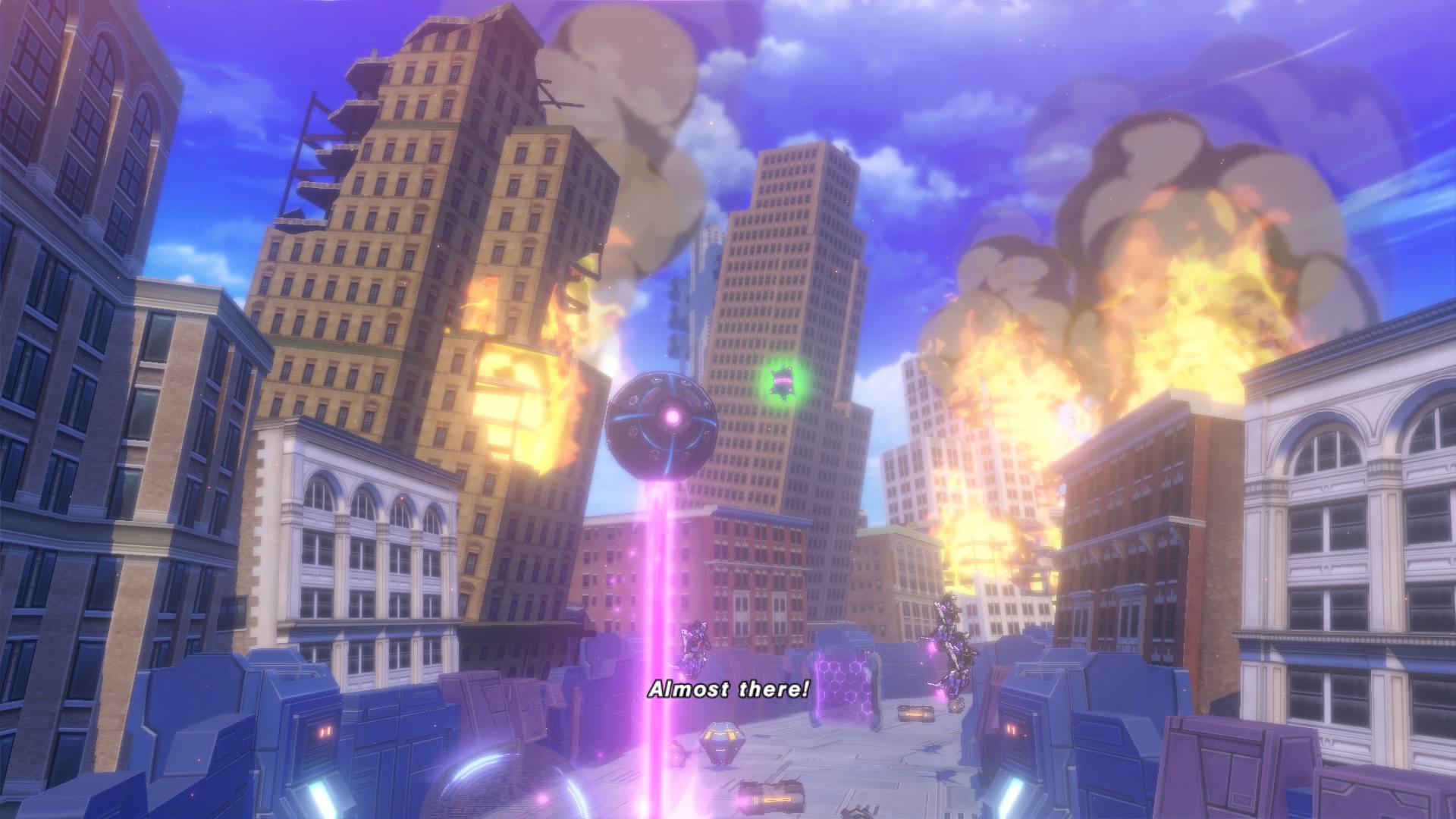 I w rezultacie nie wyszło nawet tak źle. Mamy do czynienia z grą akcji, na których PlatinumGames zna się jak nikt inny. Gameplay sprowadza się w tym przypadku do większych boss roomów. Wybieramy naszą ulubioną postać, zostajemy wrzuceni do świata gry, a na małej mapie w prawym górnym rogu wyświetla się żółty punkt – cel misji. Za każdym razem musimy po prostu dotrzeć do najtwardszego przeciwnika, pokonując przy tym zgraję słabszych lub jakieś drobne zręcznościowe fragmenty.