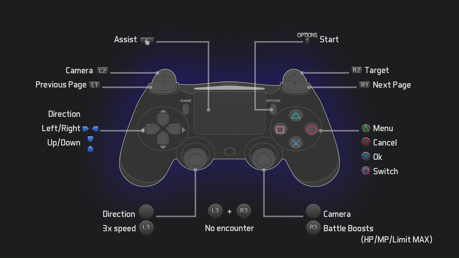 Ostatnim ułatwieniem, dostępnym po wciśnięciu obu gałek jednocześnie, jest blokada losowych potyczek. Kiedy tylko ją uruchomimy nie będziemy musieli odgrywać setek pojedynków z losowymi przeciwnikami.
