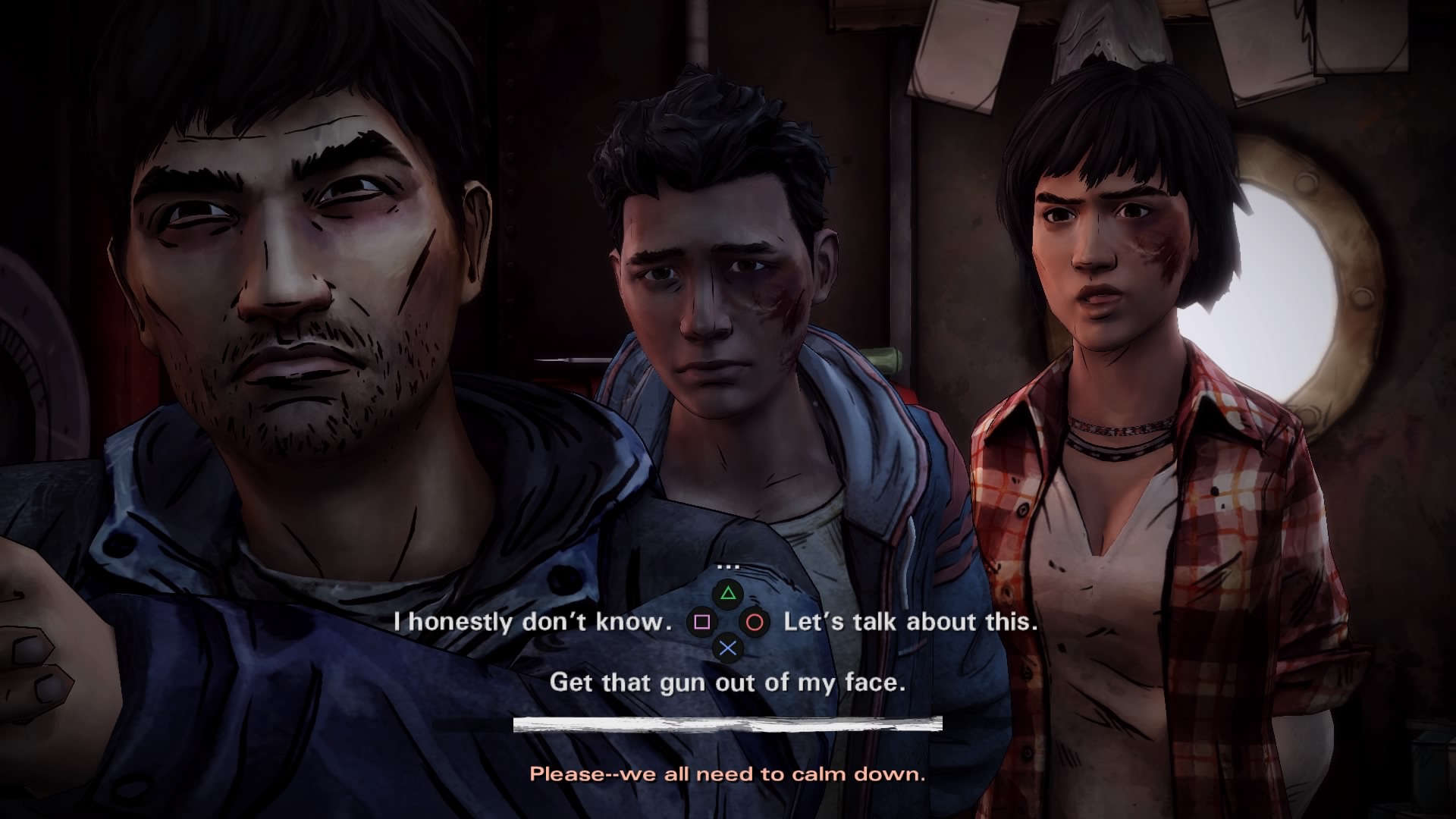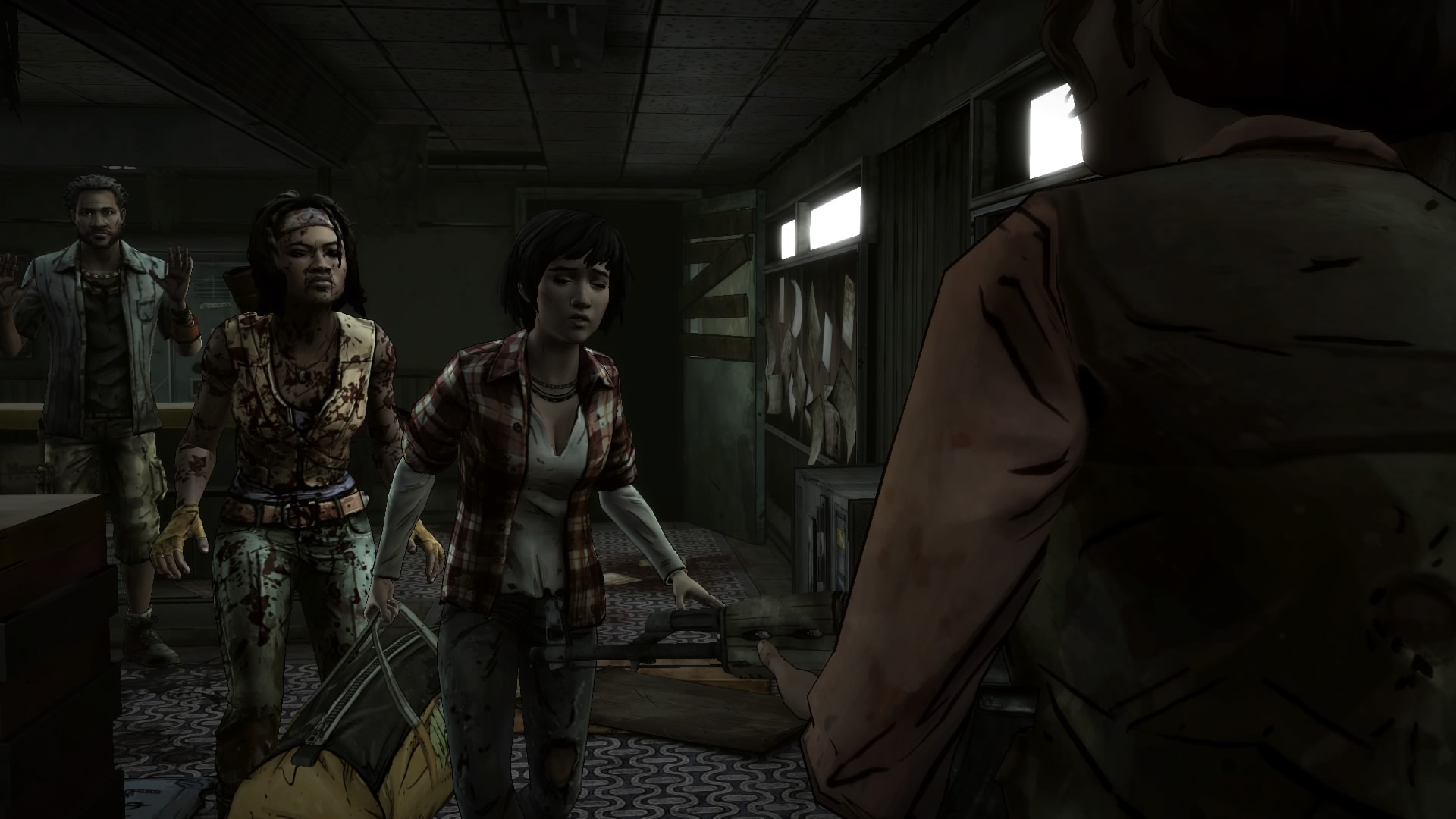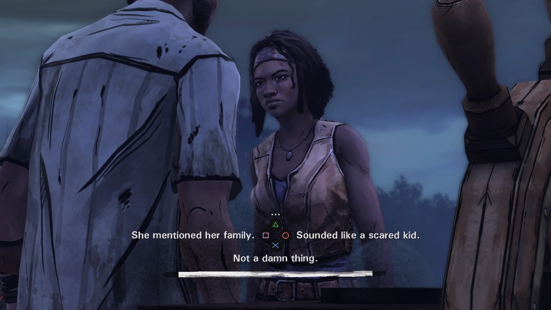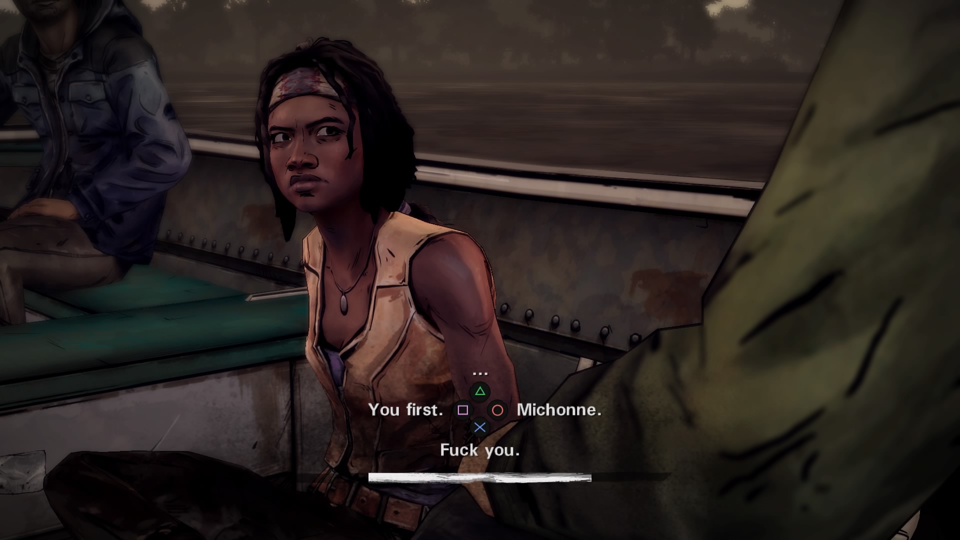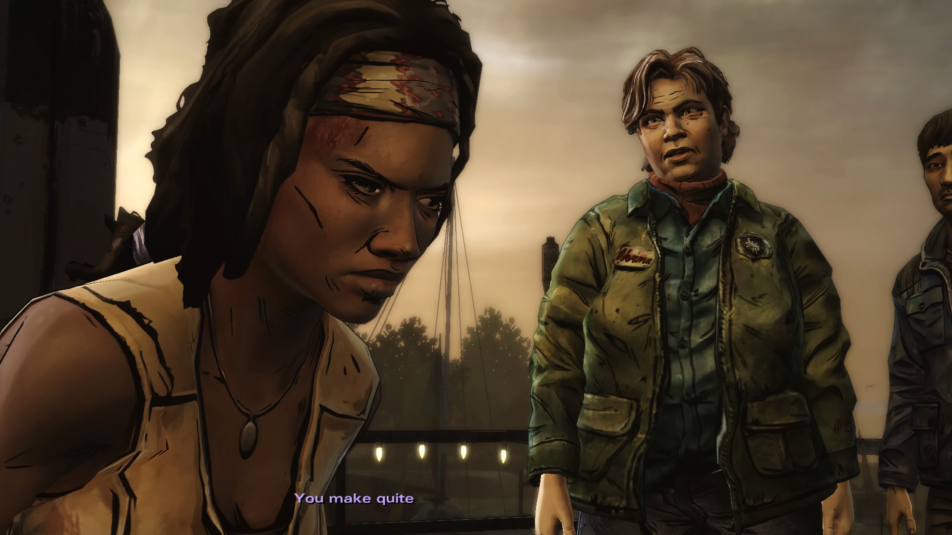 Elementem, który może nie denerwował mnie, ale o którym warto nadmienić, to okazyjne spadki fpsów. Zdarzyło się to kilka razy, ale na szczęście nie miały one wpływu na rozgrywkę, gdyż występowały podczas “filmu”. Ukończenie pierwszego epizodu The Walking Dead: Michonne zajęło mi nieco ponad godzinę, czyli standard. Mam wrażenie, że pomimo tegoż “standardu” czasowego, twórcy nie włożyli tutaj zbyt wiele treści. Fabułę odcinka można streścić w raptem kilku zdaniach. Może to dlatego, że sporo czasu zajmują walki z trupami. Jeśli chodzi o kwestie dialogowe, których jest zdecydowanie mniej niż w innych odsłonach, to brakowało mi zdecydowanie mocnych fragmentów. Były sytuacje, w których chciałoby się, żeby Michonne była bardziej agresywna, a nawet i obrzydliwie wulgarna, żeby wstała, tupnęła nogą, trzasnęła ręką o stół czy o czyjąś twarz. Kurczę! Przecież obracamy się w uniwersum opanowanym przez zombie, w którym ciężko o przetrwanie, a co najgorsze ludzie, ci prawdziwi ludzie walczą między sobą i wzajemnie się wyniszczają.