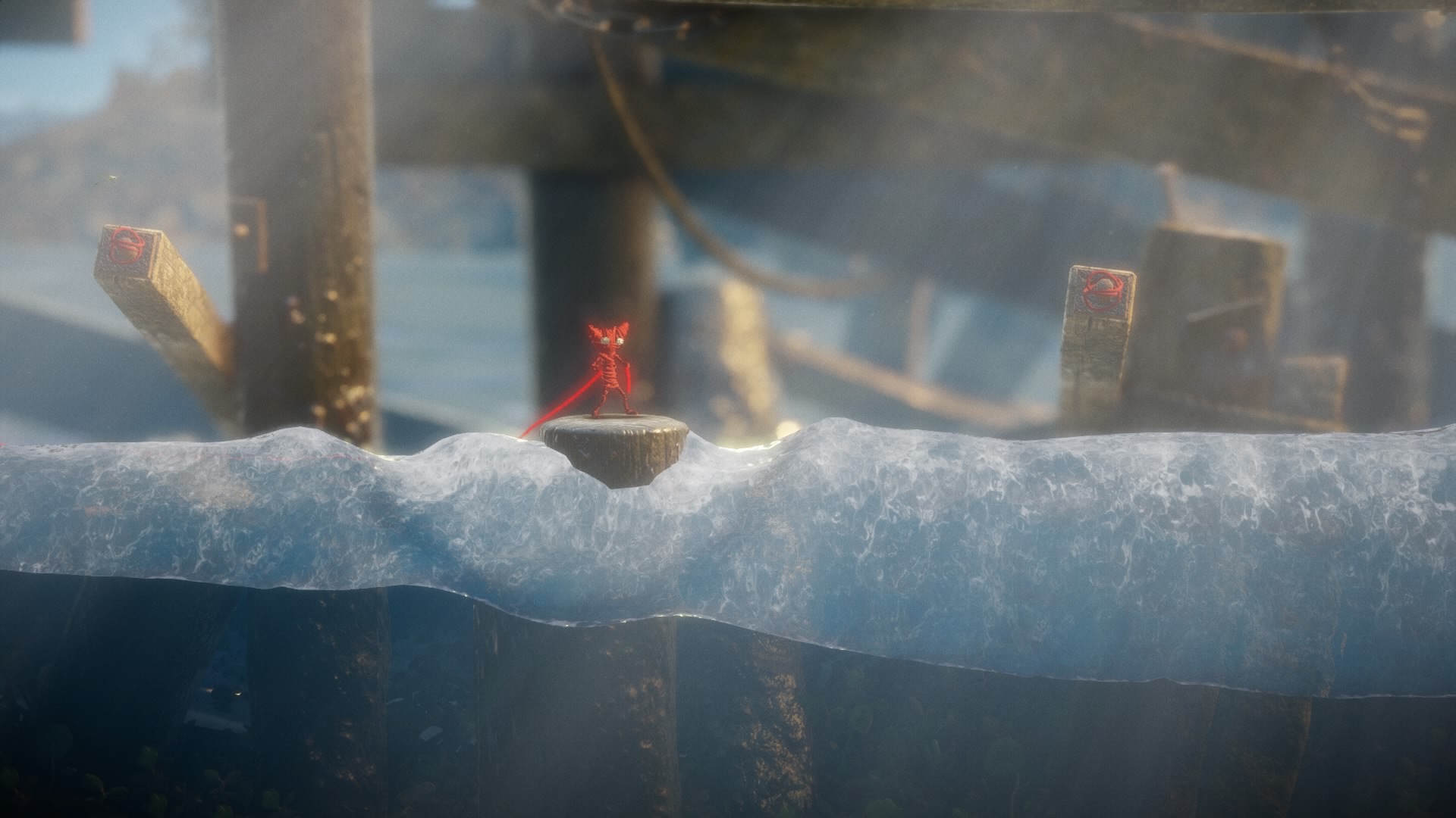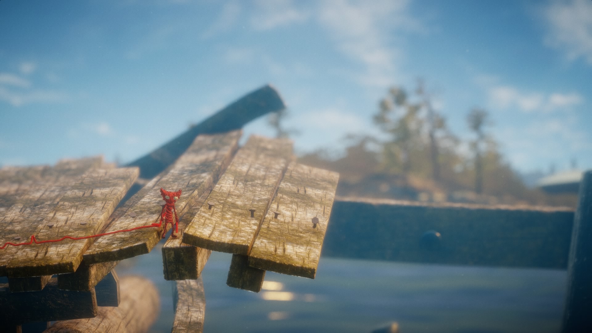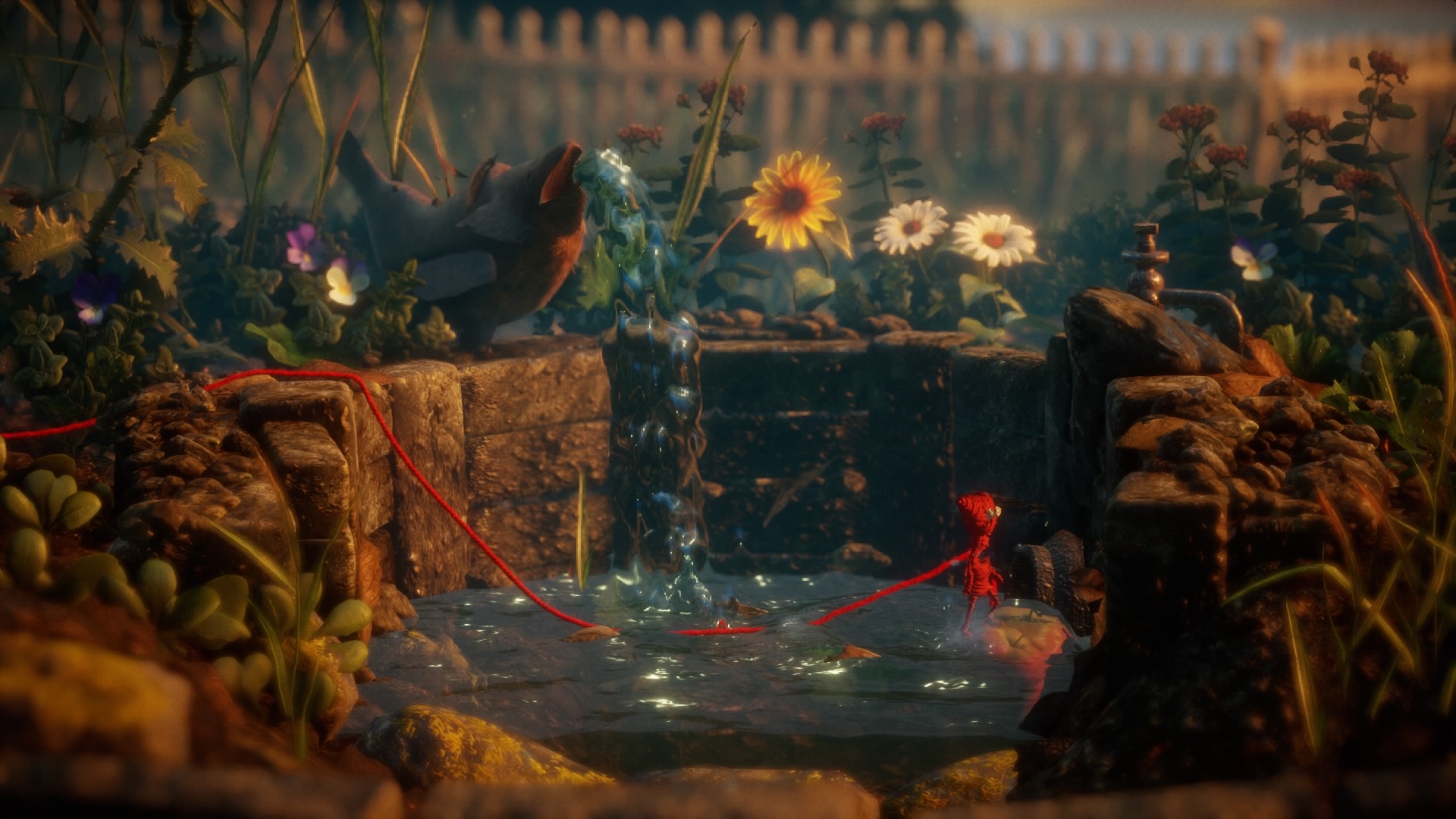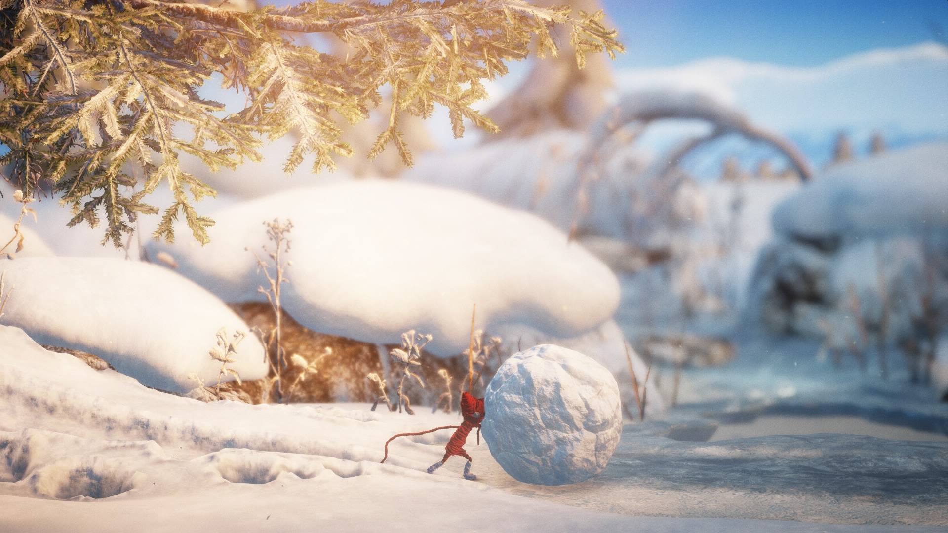 Unravel w fantastyczny sposób pokazuje, że można zrobić przepiękną grę na konsolach, jestem ciągle pod ogromnym wrażeniem, w jaki realistyczny sposób została zaprezentowana roślinność. Wszystko tutaj jest wykonane idealnie, nawet takie najdrobniejsze szczegóły jak źdźbła traw, mech na skałach, przepiękna woda, szyszki, jabłka, pojedyncze liście, kwiaty – mogę tak zachwycać się modelami 3D cały dzień. Odwzorowanie fizyki jest kolejną zaletą tej gry. Duże wrażenie zrobiły na mnie jesienne i zimowe poziomy. Jesienią mamy już zamarznięte małe zbiorniki wodne, gdy Yarny podskoczy na takim cienkim lodzie, to tafla najpierw delikatnie pęknie i nabierze wody, a dopiero po drugim skoku całkowicie się rozkruszy. Możemy także zrzucić śnieg z gałęzi, czy toczyć kule śnieżne.