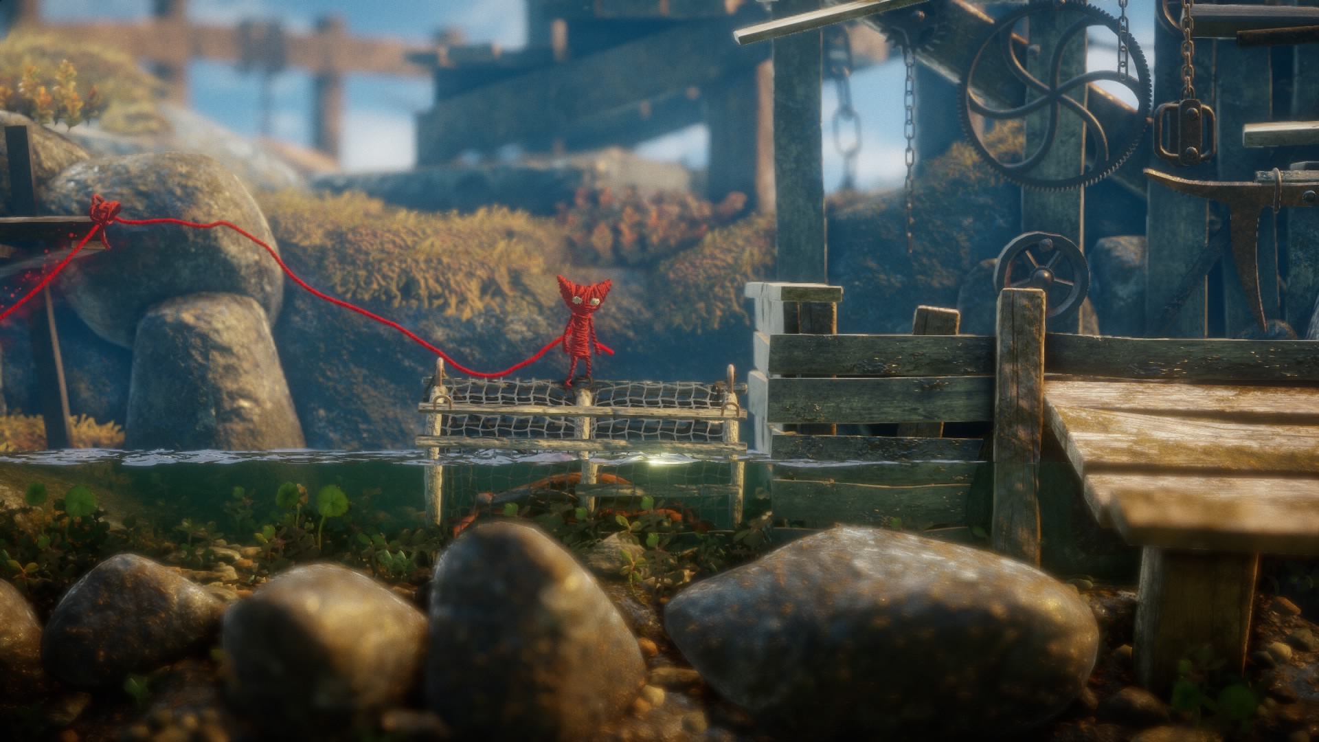Czym jest Unravel? W grze wcielamy się w postać uroczego „stworka-włóczka”, który nieustannie się pruje, gdy limit włóczki się skończy Yarny zatrzyma się w miejscu. Na szczęście na swojej drodze często może spotkać kłębek włóczki, który odnawia zawartość nitek na jego ciele. Brzmi to może trochę absurdalnie, ale jak obejrzycie jeden z filmików z gry, to szybko zrozumiecie o co chodzi. Yarny potrafi strzelić przed siebie krótkim odcinkiem włóczki, coś a’la Spider-Man, aby zaczepić się różnych miejsc, które w tym celu są odpowiednio podświetlone. To jedna z tych umiejętności, z których będziemy najczęściej korzystać w grze, gdyż Yarny często na swojej drodze napotka dużo przeszkód. Nasz bohater co prawda potrafi podskoczyć, ale jego skok jest bardzo mały.