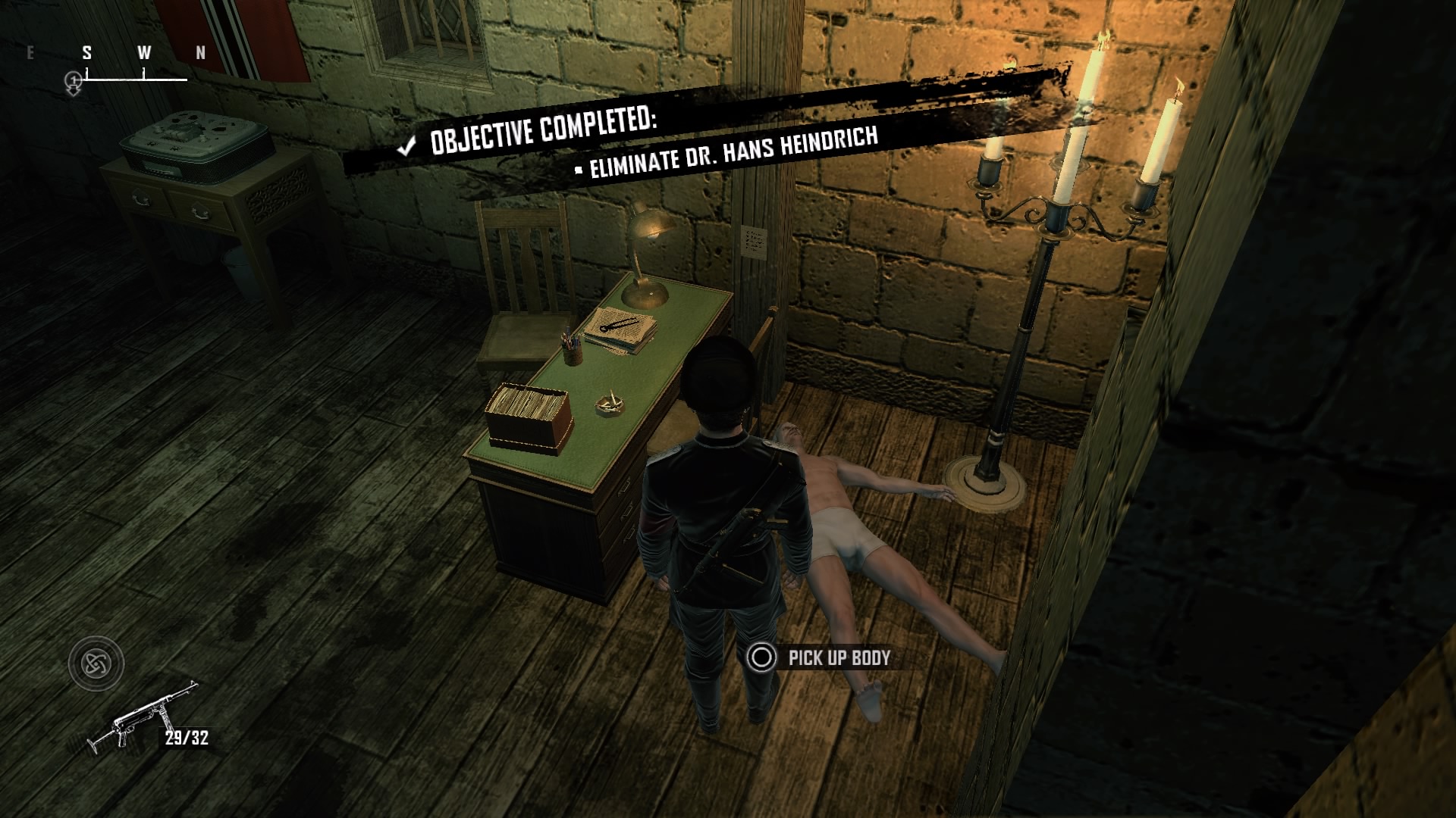 Co jeszcze ciekawego możemy robić w Alekhine`s Gun? Niektóre pomieszczenia, do których chcemy się dostać są zamknięte. Wówczas wymaga to od nas umiejętnego otwarcia zamka. W tym wypadku twórcy zaproponowali nam coś w rodzaju mini-gierek. Trzeba odpowiednio manipulować wytrychem i dobrać kształty, aby drzwi się otworzyły. Całkiem przyjemne urozmaicenie rozgrywki. Kolejna rzecz, to możliwość “gwizdania”, czyli przynęta na wroga. Są sytuacje, w których nasz cel znajduje się w towarzystwie kilku innych przyjemniaczków. Nie chcąc wywoływać strzelaniny musimy ich jakoś rozdzielić i najczęściej wykończyć jednego po drugim po cichu zaciągając w ciemniejsze zakamarki.