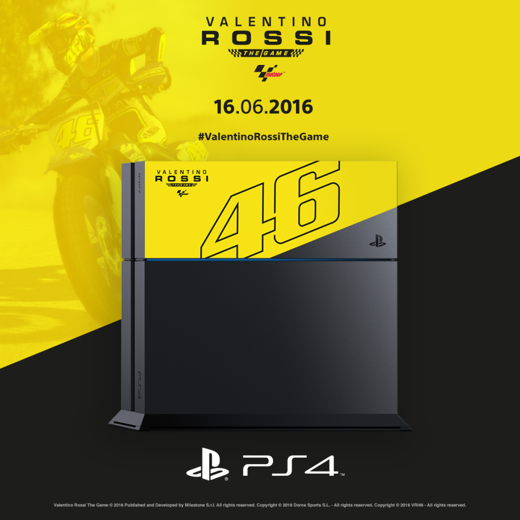 Sony Computer Entertainment Italy ogłosiło wczoraj, że będą świętować zwycięstwo Rossiego w MotoGP. Na rynek trafi specjalna edycja konsoli PS4 wyposażona w dysk 1TB i z niestandardowym oklejeniem. Będzie dostępna we włoskich sklepach 16 czerwca wraz z Valentino Rossi The Game i będzie zawierała grę jak i przepustkę sezonową.