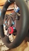 Obręcz G29 ma typowo sportową budowę. Dolna jej cześć jest pozioma, tak, jak ma to teraz miejsce w najnowszych sportowych samochodach – kształt litery D. Jej obwód wynosi 27 cm. Kierownica jest pokryta wysokiej jakości skórą, która jest przyjemna w dotyku. Ale nie to jest najważniejsze, gdyż przyczepność gołych dłoni jest po prostu fantastyczna. Nawet po dłuższym używaniu dłonie dalej leżą sztywno na kierownicy. Na środku kierownicy mamy duże logo PlayStation. Po lewej stronie umieszczono krzyżaka D-Pad, a po prawej przyciski figurowe. Pod D-Padem mamy przyciski: L1 i L2, po drugiej stronie pod figurami mamy oczywiście przyciski R1 i R2. Pod logiem PlayStation, na południowej części kolumny kierownicy, która jest wykonana z aluminium mamy trzy przyciski: share, options i PS Button. Nad znaczkiem PlayStation mamy mały wyświetlacz, który informuje nas o obrotach silnika i wiecie co, działa on prawidłowo w każdej grze, którą obsługuje ta kierownica. Dodatkowo mamy jeszcze 24-punktowe pokrętło wyboru i przyciski +/- z przodu kierownicy, które umożliwiają precyzyjne dostosowanie preferencji kierowania. Nie mogło zabraknąć także za kołem kierownicy łopatek do zmiany biegów. Łopatki zostały wykonane ze stali nierdzewnej, chodzą dosyć ciężko, więc nie ma mowy o przypadkowej zmianie biegów, a ich wciśnięciu towarzyszy charakterystyczny, głośny klik.