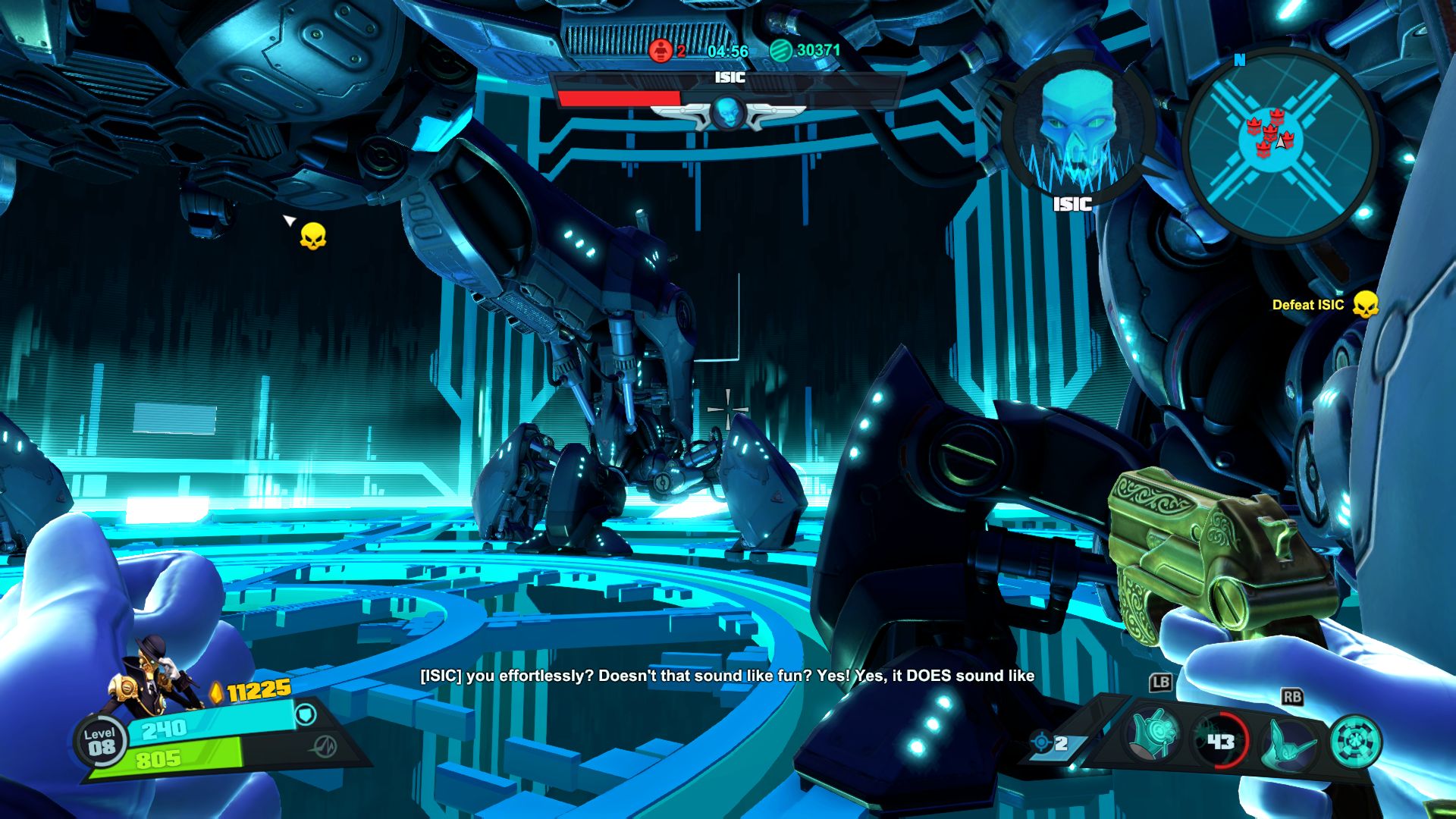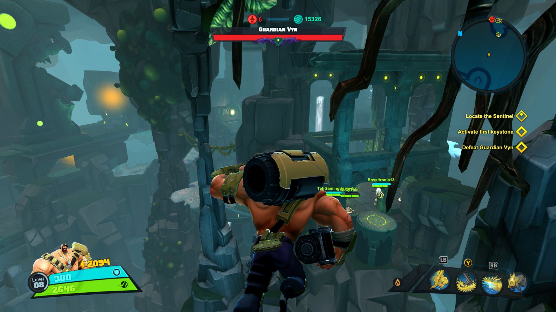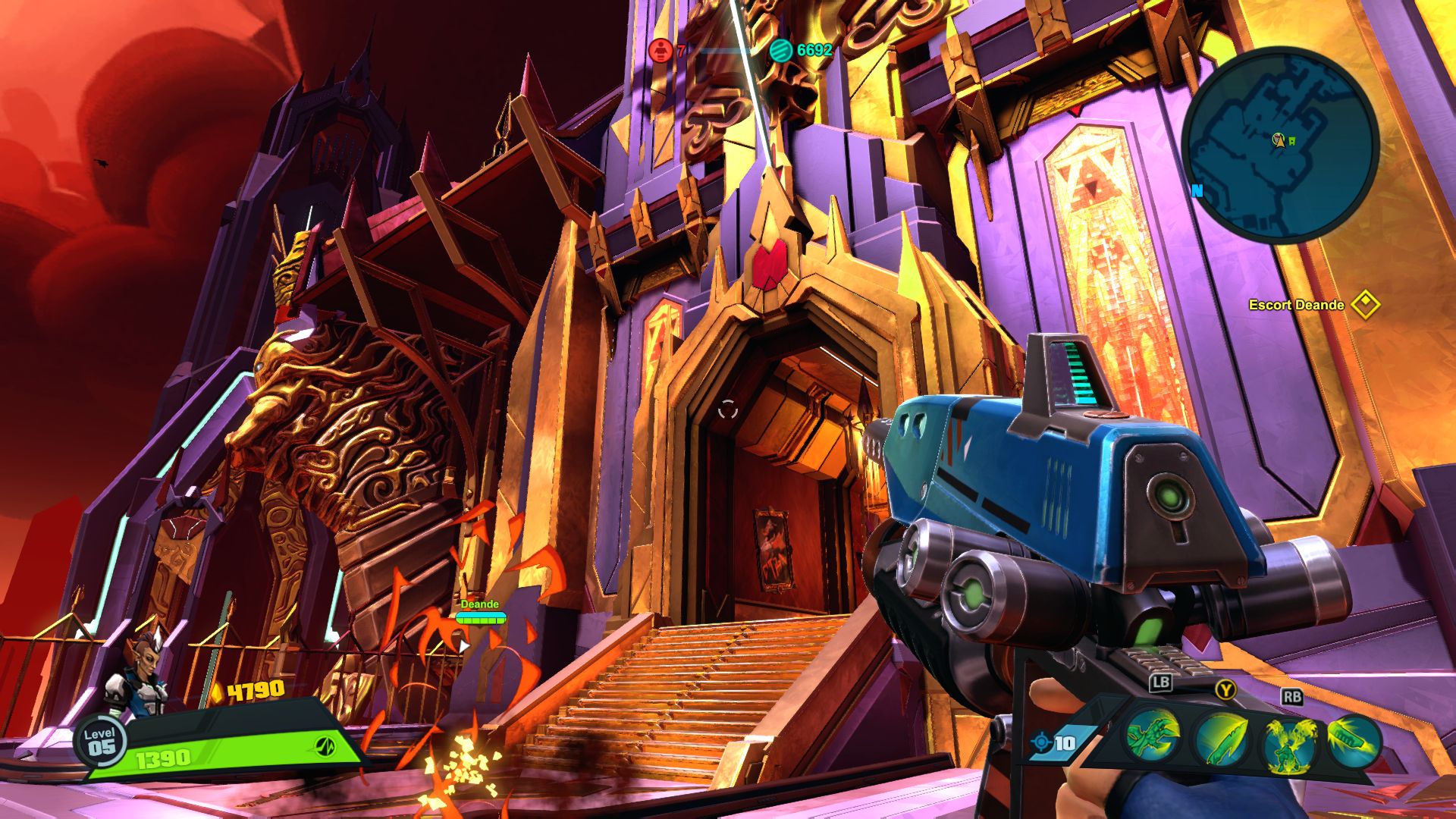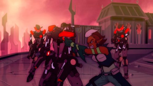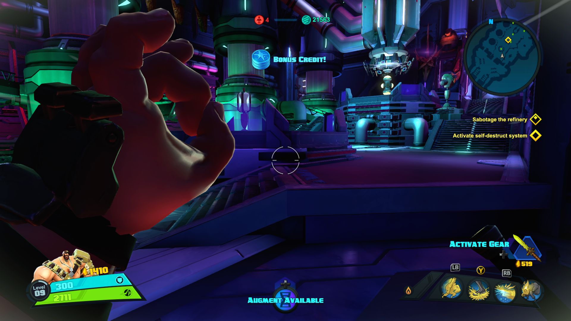 Nie jest tak różowo, jeśli chodzi o dostępne tryby gry. Mamy dostęp do story i trzech trybów wieloosobowych, tyle. W story możemy grać samotnie lub z czwórką kompanów online. W trybach gracz kontra gracz możemy grać z żywymi ludźmi lub prywatnie z botami. Do tego dochodzi opcja gry na podzielonym ekranie, coś rzadko spotykanego, wielkie brawa. Story daje do dyspozycji 9 misji, są one monotonne i nieciekawe. Opierają się na prostym schemacie, przemy przed siebie zabijając masy wrogów, ulepszamy postacie, wykupujemy wieżyczki i wykonujemy jakiś cel. Jest ich tylko kilka, mamy ochronę jądra systemu, eskortę dużego robota-robaka i zabijanie bossów. Wszystko kręci się wokół tego. Oczywiście grając online jest ciekawiej, mniej biegania i gra się raźniej. Gra potrafi się też wysypać po 40 minutach misji przez utratę połączenia zostawiając nas z niczym. Jeśli inny gracz wyjdzie lub zostanie rozłączony misja jest kończona w niepełnym składzie, co też potrafiło prowadzić do porażki. Ba, nawet jeśli gracz się rozłączy podczas wyboru postaci ruszamy w niepełnym składzie. Mimo wszystko gonitwa po poziomie czy to w piątkę czy mniejszej ekipie sprawia dużo radochy. Wszędzie porozrzucane są power-upy dające punkty, czasowe przyspieszenie postaci, pancerz itd. Możemy też znaleźć odłamki pełniące rolę waluty w meczu. Kupujemy za nie wieżyczki, których jest kilka rodzai, stacje leczące, przyspieszające czy też pomocne w innych trybach minionki. Część wieżyczek możemy ulepszać na kolejne poziomy. Wszystko to daje dużo możliwości i potencjału, ale jednak coś nie zagrało, projekt story jest po prostu nudny. Rozmowy między bohaterami potrafią wywołać uśmiech, postacie rzucają one-linerami doskonale puentując rozmowy. Robią to z humorem, który znamy z innych gier Gearbox. Jednak tu brakuje mi ekspozycji wydarzeń, wszystko dzieje się w tle, głównie na bazie rozmów przez radio.