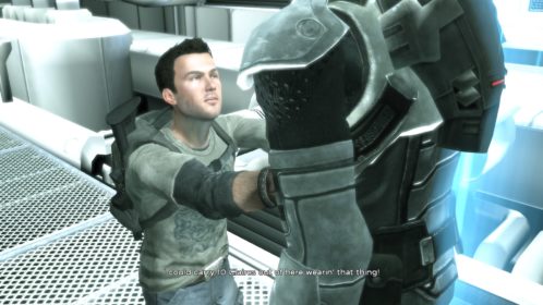 Niestety mimo nowego silnika animacja postaci jest kiepska (szczególnie pływanie to jakiś dramat). Efekt szmacianej lalki na ogół budzi śmiech i zażenowanie. Obiekty często przenikają przez siebie. Zdarzało mi się „przykleić” lub zaciąć w różnych przedmiotach lub ścianach – jednak na całe szczęście zawsze udawało się wydostać. O ile grafika jest przyzwoita, tak sam kompleks, po którym cały czas się przemieszczamy jest mało ciekawy, a większość pomieszczeń bardzo podobna. Mógłbym się także przyczepić do walk z bossami. Mogłyby być bardziej urozmaicone. Nie dość, że jest to zawsze mech, to sama walka ogranicza się do najprostszego strzelania. Zero główkowania. Zero taktyki.