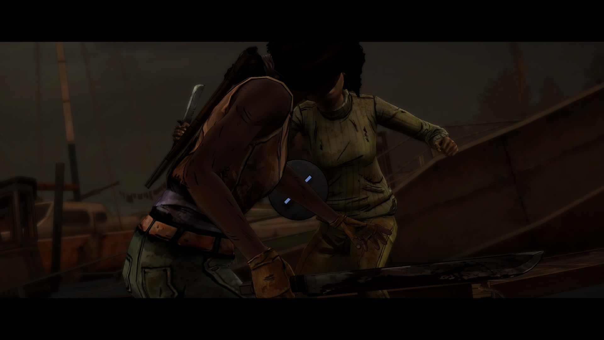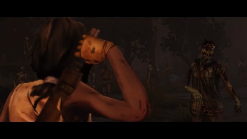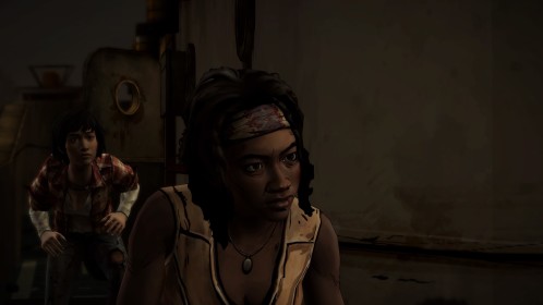 W dalszym ciągu nie ma zbyt wielu fragmentów, w których musimy sterować postacią. Ogranicza się to wyłącznie do wychylania zza przeszkody i odpowiedniego wciskania przycisków. Sekwencji Quick Time Event nie brakuje, choć są one na tyle wolne i przewidywalne, że nie ma raczej możliwości popełnienia błędów. To czego brakowało mi w poprzednim odcinku, to taka stanowczość Michonne. Pisałam poprzednio o tym, że chciałabym zobaczyć ją nieco bardziej agresywną, a nawet wulgarną. W tym epizodzie, jest dużo lepiej pod tym względem. Poznajemy główną bohaterkę z nieco innej strony, która musi niekiedy kontrolować swoje poczynania.