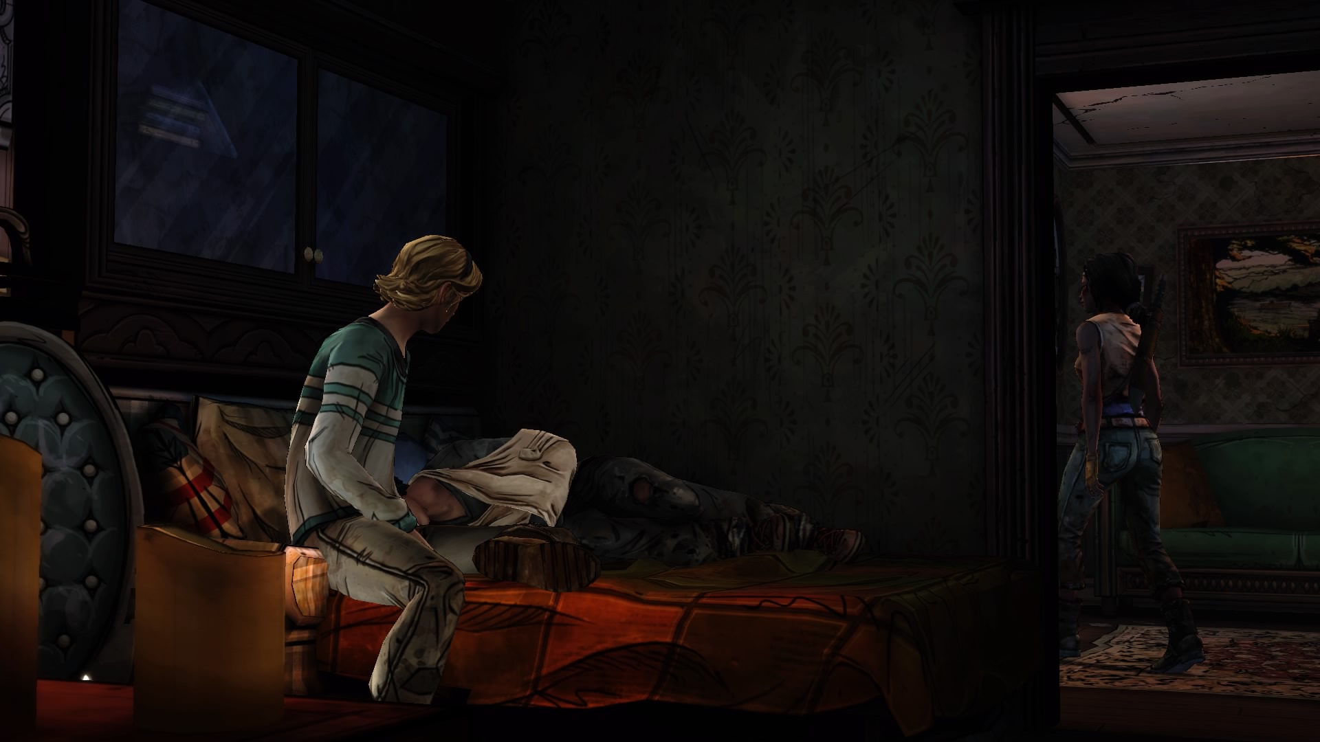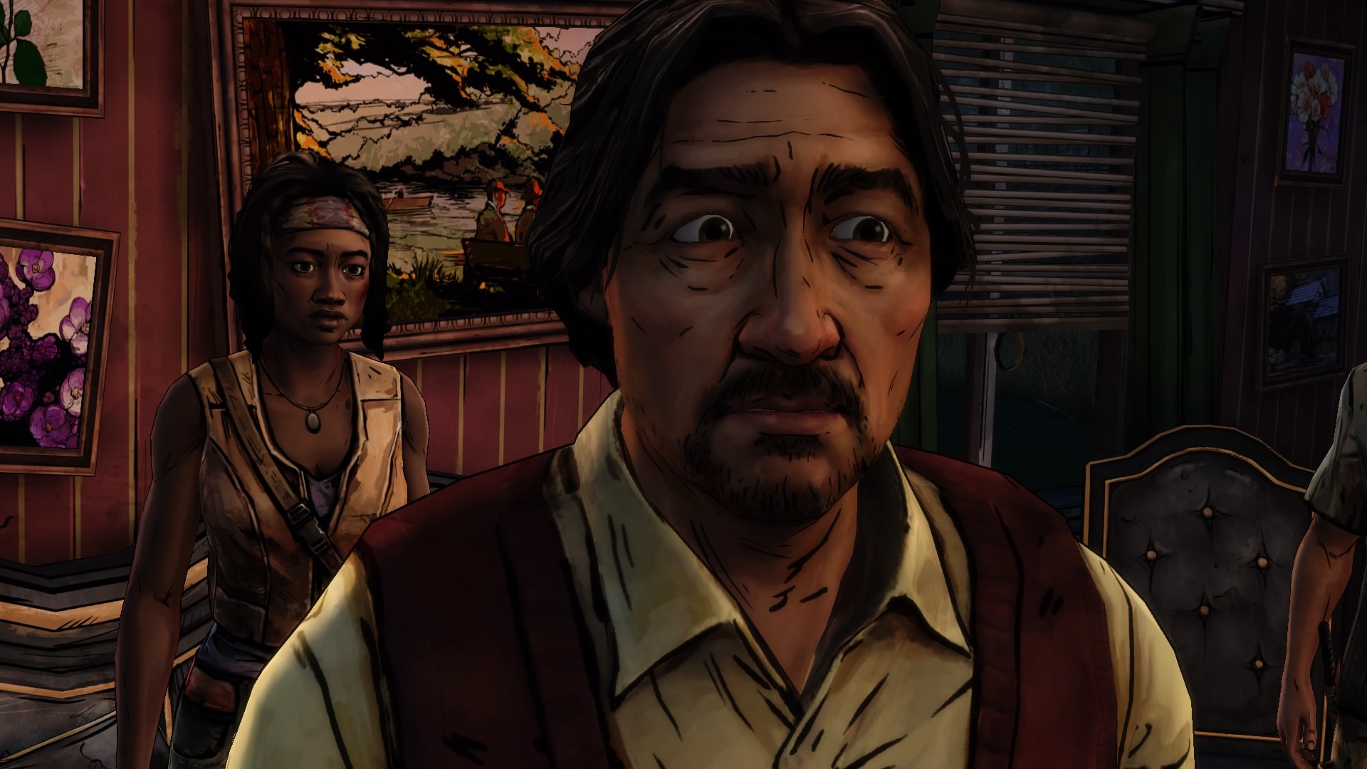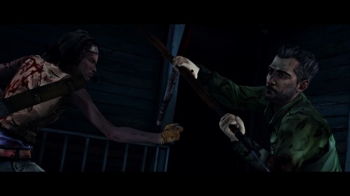 Odcinek pod nazwą “Give No Shelter” rozpoczyna się w momencie zakończenia pierwszego epizodu, jest jego bezpośrednią kontynuacją, nie ma żadnego wątku pobocznego. W tej części mamy okazję nieco bliżej poznać Michonne. Ponownie pojawiają się wspomnienia z przeszłości, mamy nawet możliwość odegrania tamtych wydarzeń. Główna bohaterka miewa halucynacje, widzi rzeczy, które nieodzownie przypominają jej… no właśnie… tego zdradzić nie mogę. Uwięziona we własne myśli ma w końcu szansę wylać to, co leży jej na sercu, bowiem znajdą się tacy, którzy są w podobnej sytuacji. Poznamy tutaj zatem ludzkie dramaty i przemyślenia. Niektórzy będą mieli ogromną potrzebę opowiedzenia swoich losów.