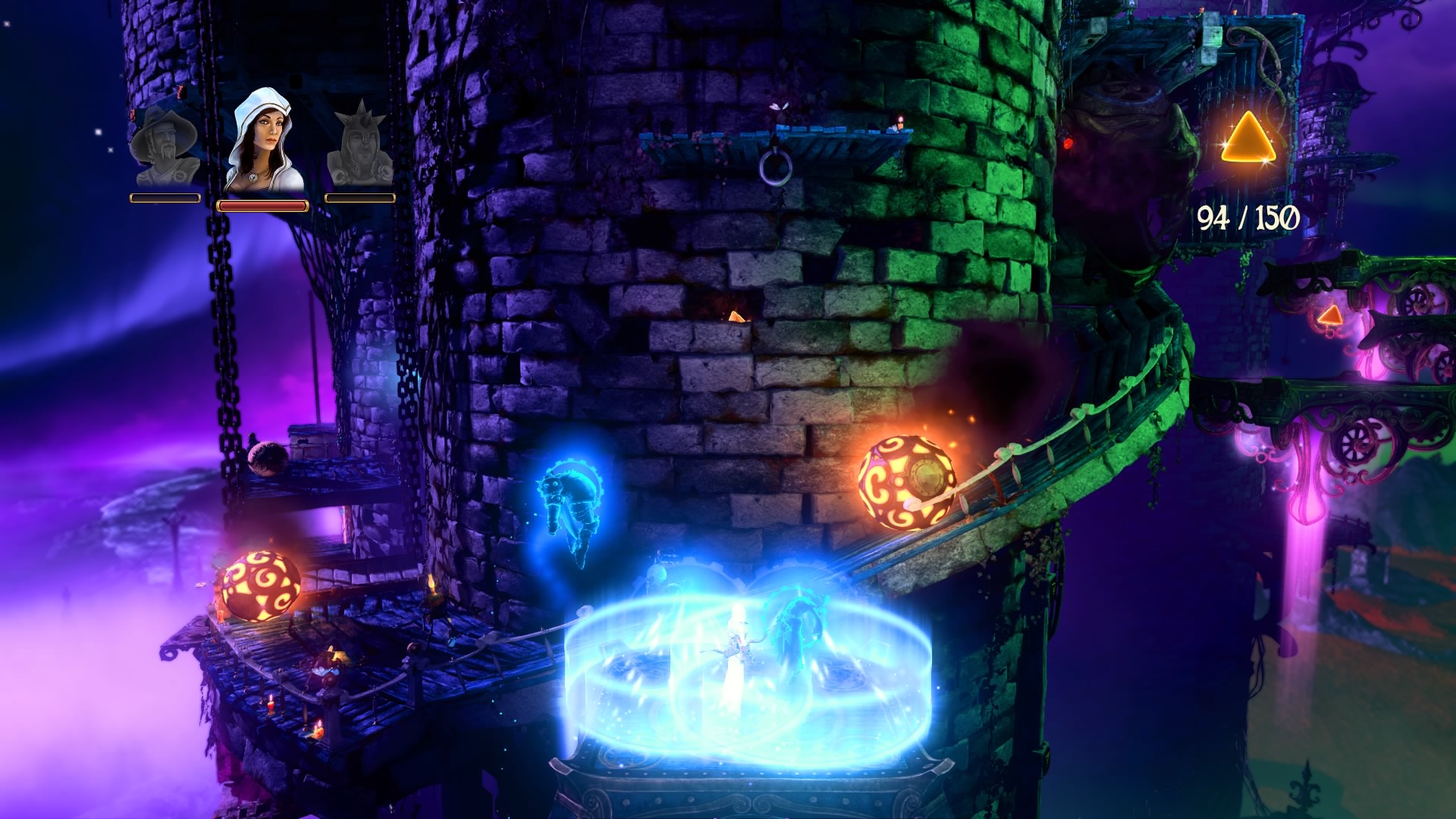 Sama rozgrywka sprowadza się do tego samego, co już znamy. Uganiamy się za artefaktem pokonując platformówkowe poziomy urozmaicone przeciwnikami i zagadkami. Te ostatnie niestety zostały spłycone przez ograniczenia postaci. Wydają się prostsze albo też nie zmieniły się na tyle, żeby stawiać wyzwanie trzeci raz, w kolejnej produkcji. Wrogowie zostali wykonani solidnie w klimatach fantasy, kilku nawet bardzo pozytywnie zaskakuje designem. Niestety walka jest prosta i nie daje satysfakcji. Najlepiej wypada tu aspekt platformowy, choć mógłby stawiać większe wyzwanie. Poziomy są zróżnicowane koncepcyjnie, zobaczymy tu kilka różnych środowisk. Są one w większości pieczołowicie zaprojektowane, bogate w detale i małe smaczki dodające klimatu. Cały czas przemierzając kolejne krainy, zbieramy poukrywane wszędzie trójkąciki. Nie wpływają one na rozwój naszych postaci, a jedynie dają dostęp do kolejnych poziomów. Spełniają za to doskonale rolę znajdziek, które chcemy zebrać, a czasami nawet trzeba się zastanowić jak to zrobić.