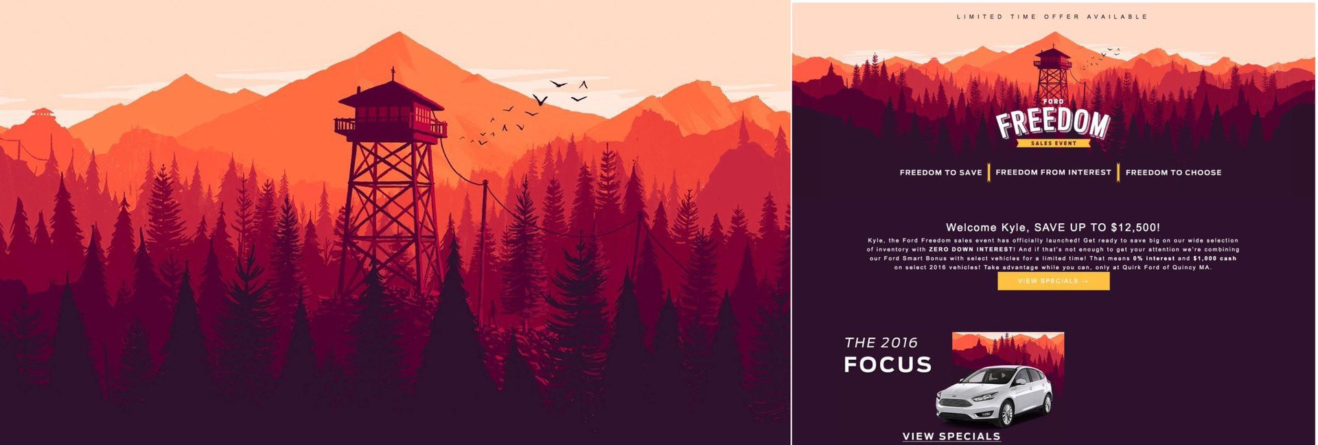 źródło: http://www.videogamer.com/ps4/firewatch/news/firewatch_art_used_in_ford_dealership_ad.html