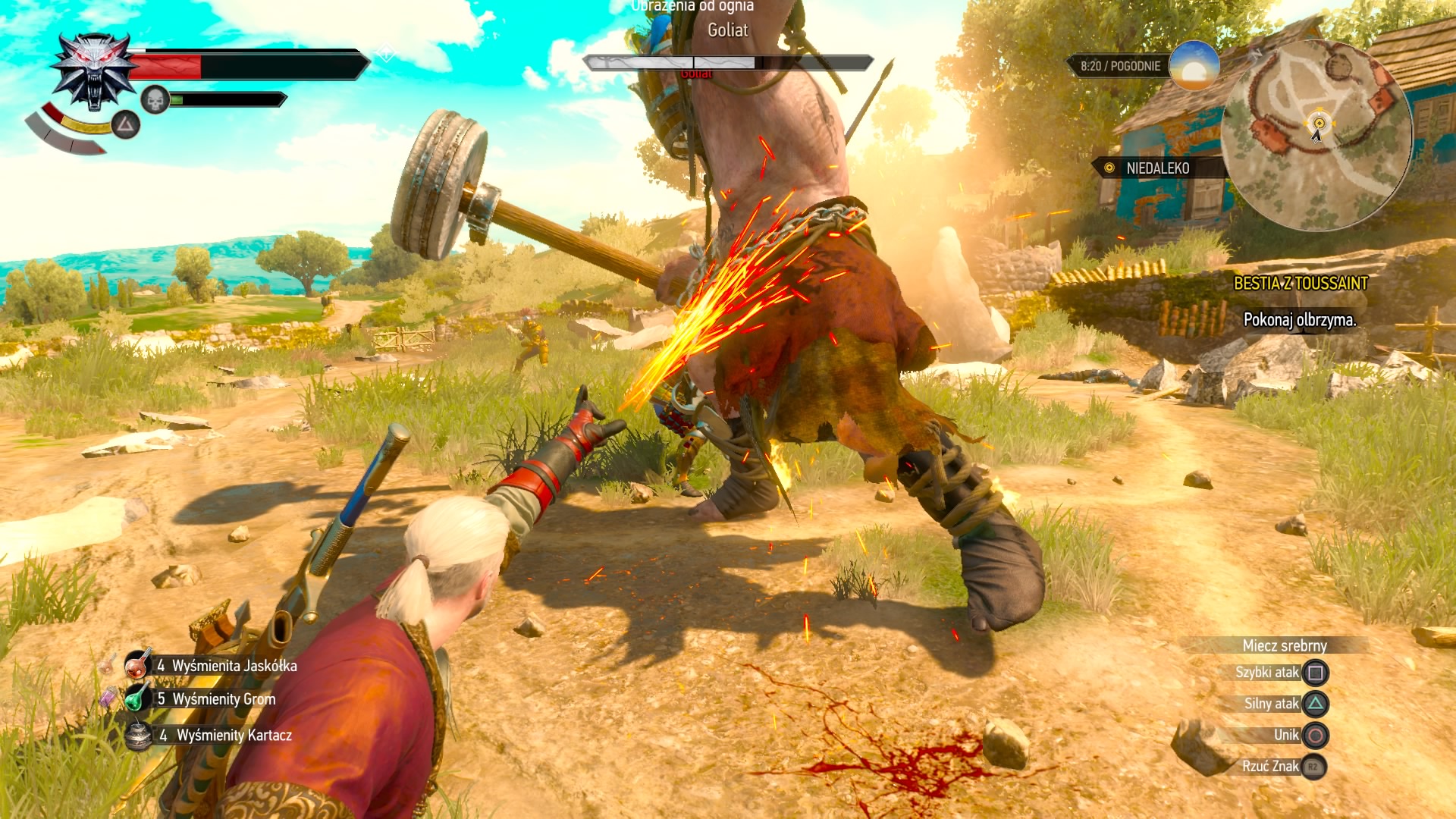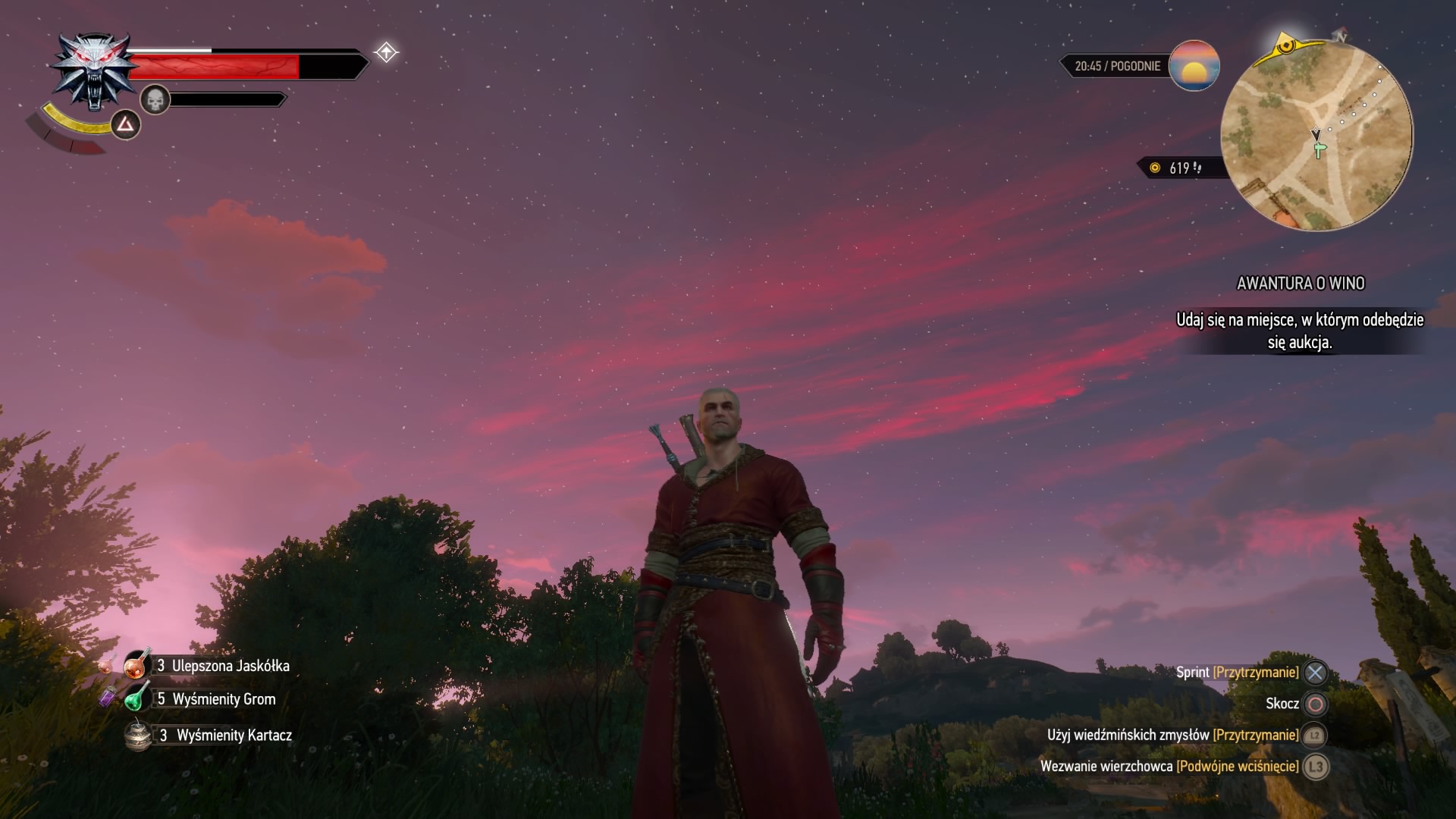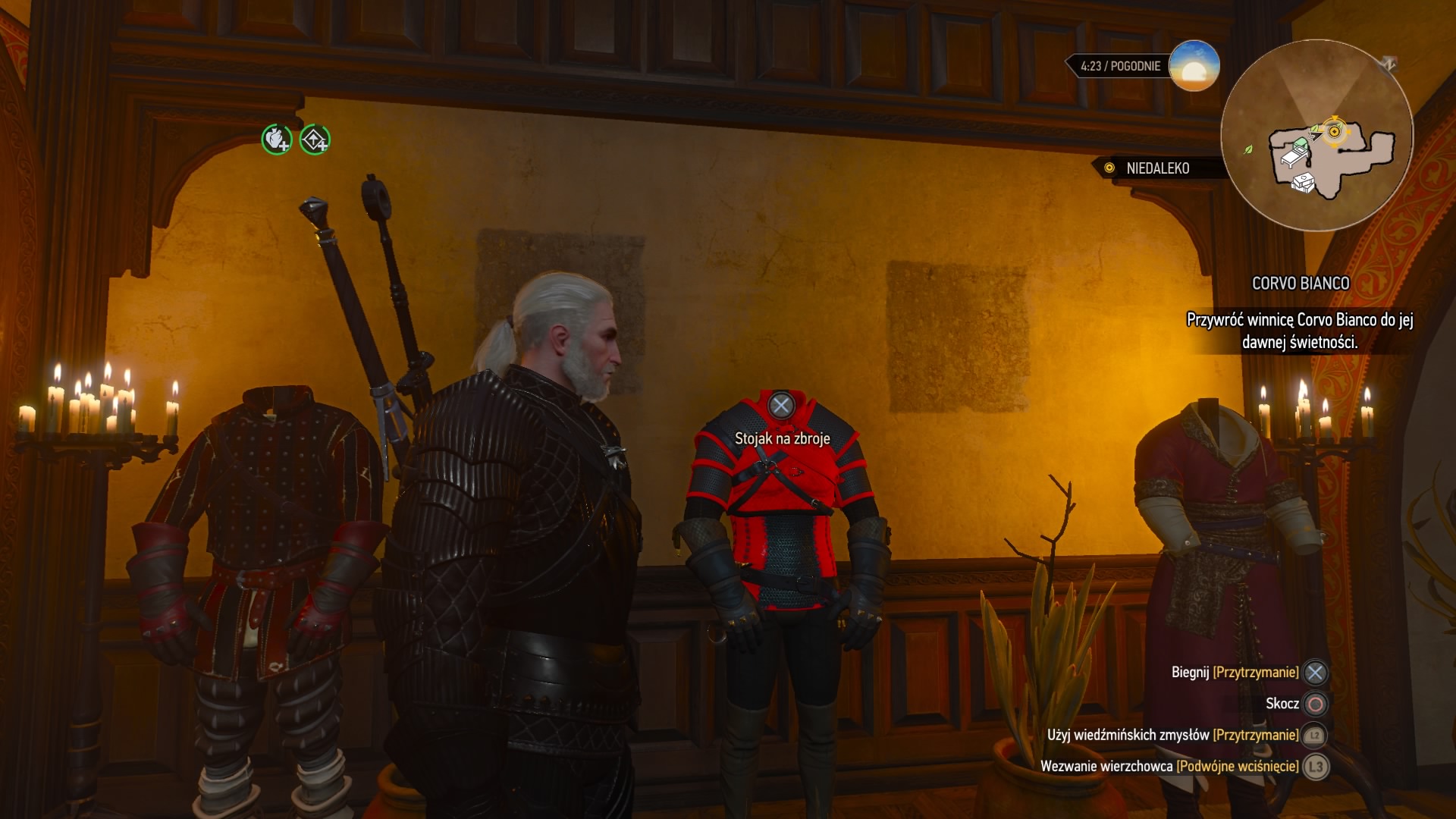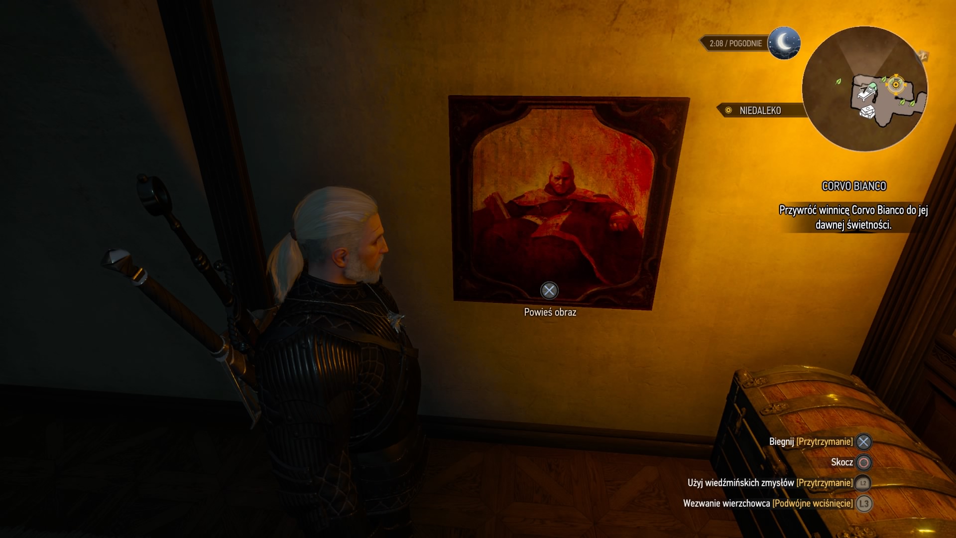 Samo Toussaint, którego stolicą jest Beauclair, to kraina winem płynąca. Swoją sławę na całym świecie zawdzięcza licznym winnicą, które produkują najlepsze wina. To spokojna kraina, dla wielu wyglądająca, jak z bajki, w której każde święto jest hucznie obchodzone. Będąc przy winnicach, to warto przybliżyć wam „Corvo Bianco”. W tej winnicy zadomowiła się Bruxa, czyli wampir wyższy, pod postacią nagiej kobiety, która nie obawia się światła, a po wypiciu krwi śpiewa – pamiętacie jeszcze zwiastun zatytułowany „Lullaby of woe”? To jest właśnie Bruxa. Zabijając Bruxe, wiedźmin otrzymuje na własność winnice od Księżnej Anny. Geralt ma w końcu swój dom, miejsce do którego może teraz wracać, odpocząć, czy przezimować. To jedna z największych nowości w dodatku „Krew i wino” Na początku winnica jest w opłakanym stanie, a za solidną sumkę nasz majordomus przywróci jej królewski wygląd. Kolejną nowością jest wieszanie obrazów na ścianach oraz eksponacja mieczy i pancerzy na stojakach. Nie spodziewałem się, że Redzi kiedyś wpadną na taki pomysł, w końcu wiedźmin, to wieczny podróżnik, ale przyznaje, że bardzo spodobał mi się ten pomysł. Oprócz modernizacji wnętrza możemy także zagospodarować sobie pobliskie tereny. Geralt może teraz sadzić zioła potrzebne do wytwarzania najbardziej potrzebnych eliksirów. Wierna Płotka w końcu ma stajnie, a i sam Geralt przed domem ma już ostrzałkę do mieczy oraz miejsce do naprawiania pancerza.