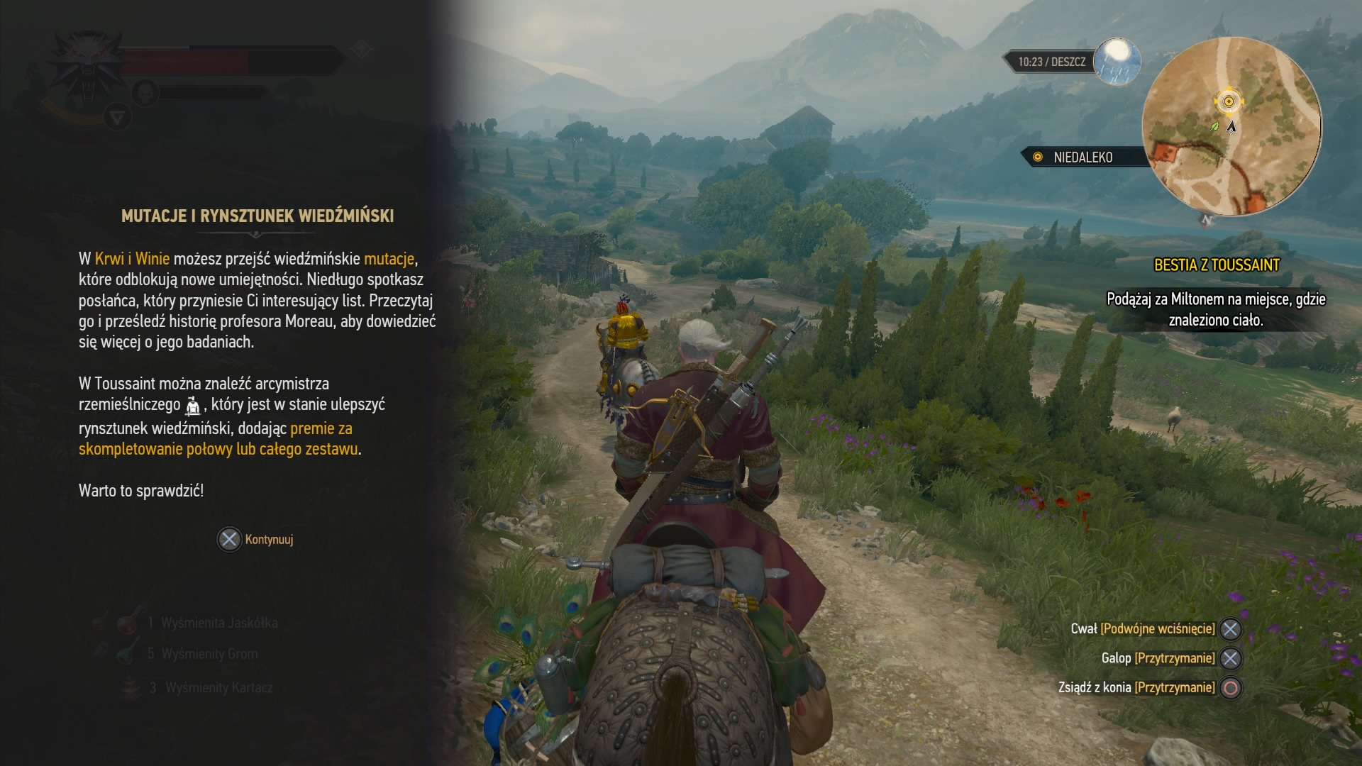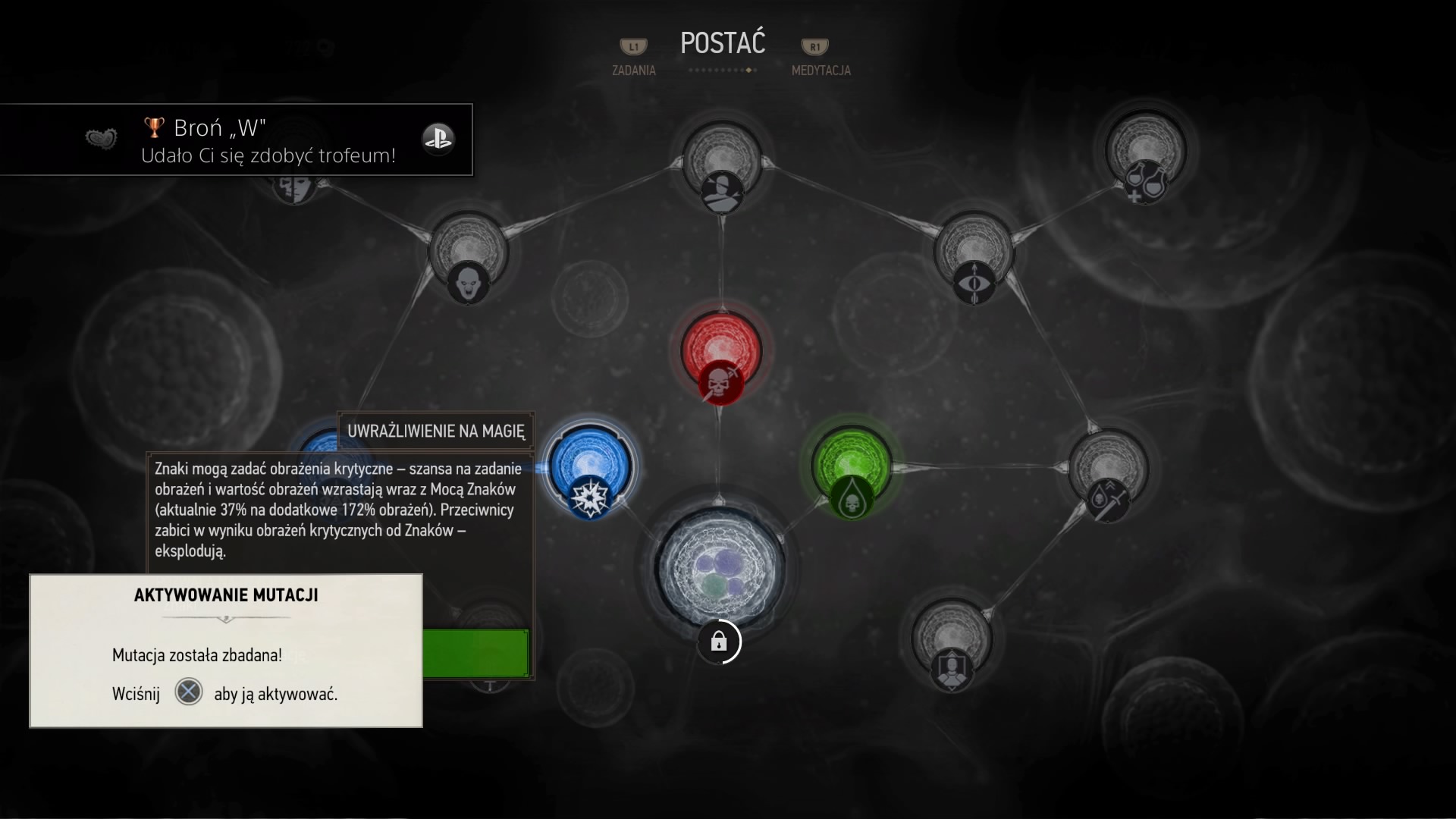 Zostając przy nowościach warto wspomnieć o mutacjach. W pewnym momencie Geralt otrzyma list od Yennefer, który to zawiera informacje o pewnym profesorze, który prowadził badania nad wiedźmińskimi mutacjami. Profesor chciał, aby jego syn, który został wiedźminem, ponownie został normalnym człowiekiem. Niestety efekty eksperymentów były takie, że zamiast pomagać, wzmacniały tylko ich siłę. Geralt odwiedzając laboratorium profesora szybko nauczył się wytwarzać nowe mutacje. Polegają one na tym, że musimy mieć przynajmniej dwa wolne punkty umiejętności oraz kilka dużych, niebieskich, zielonych lub czerwonych mutagenów. Gdy spełniamy jeden z tych warunków, możemy np. wzmocnić moc znaków. Aard ma teraz 25% szans, aby zamrażać przeciwników. Używając czerwonego mutagenu możemy teraz zadawać więcej obrażeń przeciwnikom odpornym na kontratak, zielony mutagen pozwoli przykładowo zadawać dużo silniejsze obrażenia, gdy Geralt jest zatruty eliksirami. W pewnym momencie gry otrzymamy także stół z aparaturą do Alchemii. Będziemy mogli tam rozkładać mutageny z potworów na zwykłe mutageny mniejsze. Jeżeli, tak jak ja za często nie korzystacie z odwarów, to rozbieranie mutagenów naprawdę przypadnie wam do gustu.