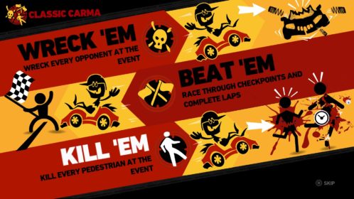 Powraca znana nam para – Max Damage i Die Anna, tak jak i zgraja znanych już przeciwników w swoich autach. Wszystko odnowione, czasami odmłodzone, jednak nadal wypełnione starym sznytem i klimatem. Nie są to standardowe wyścigi, więc warto na początku wyjaśnić na czym polega gra. Podstawowe wyścigi można wygrać na trzy sposoby: zaliczyć daną liczbę okrążeń na pierwszym miejscu lub bardziej wyszukanie, rozwalając pojazdy wszystkich przeciwników albo przejeżdżając wszystkich przechodniów w danej lokacji (warto wspomnieć, że ci liczeni są w setkach). Przypominają się czasy dzieciństwa.