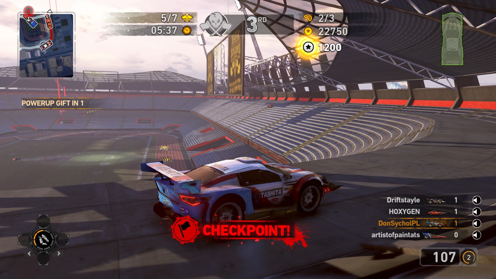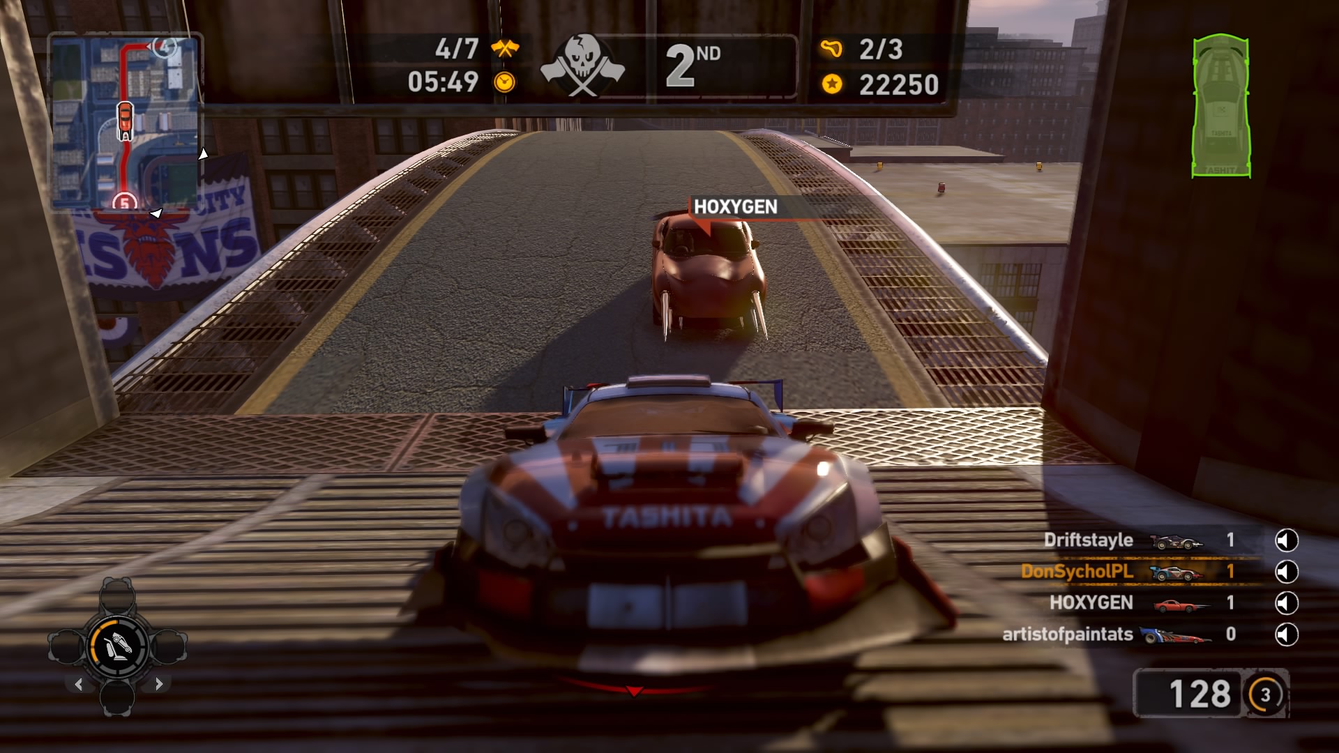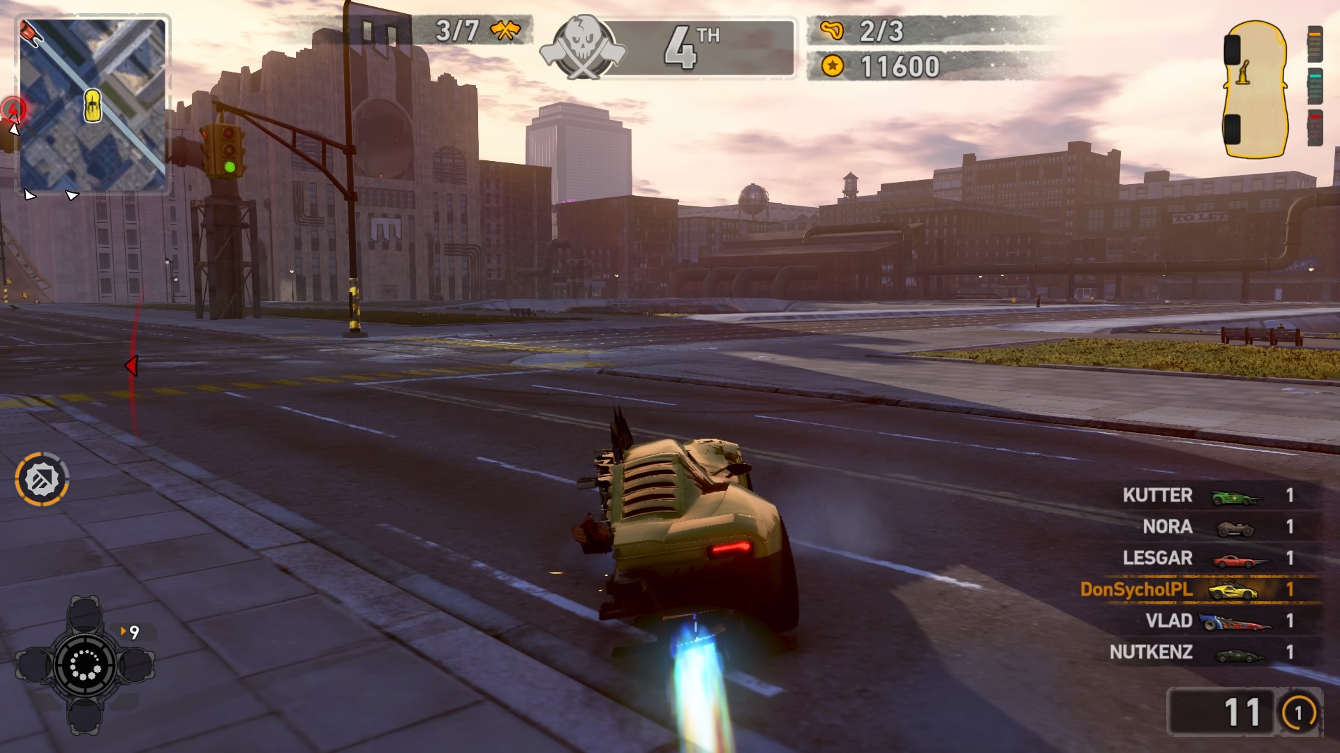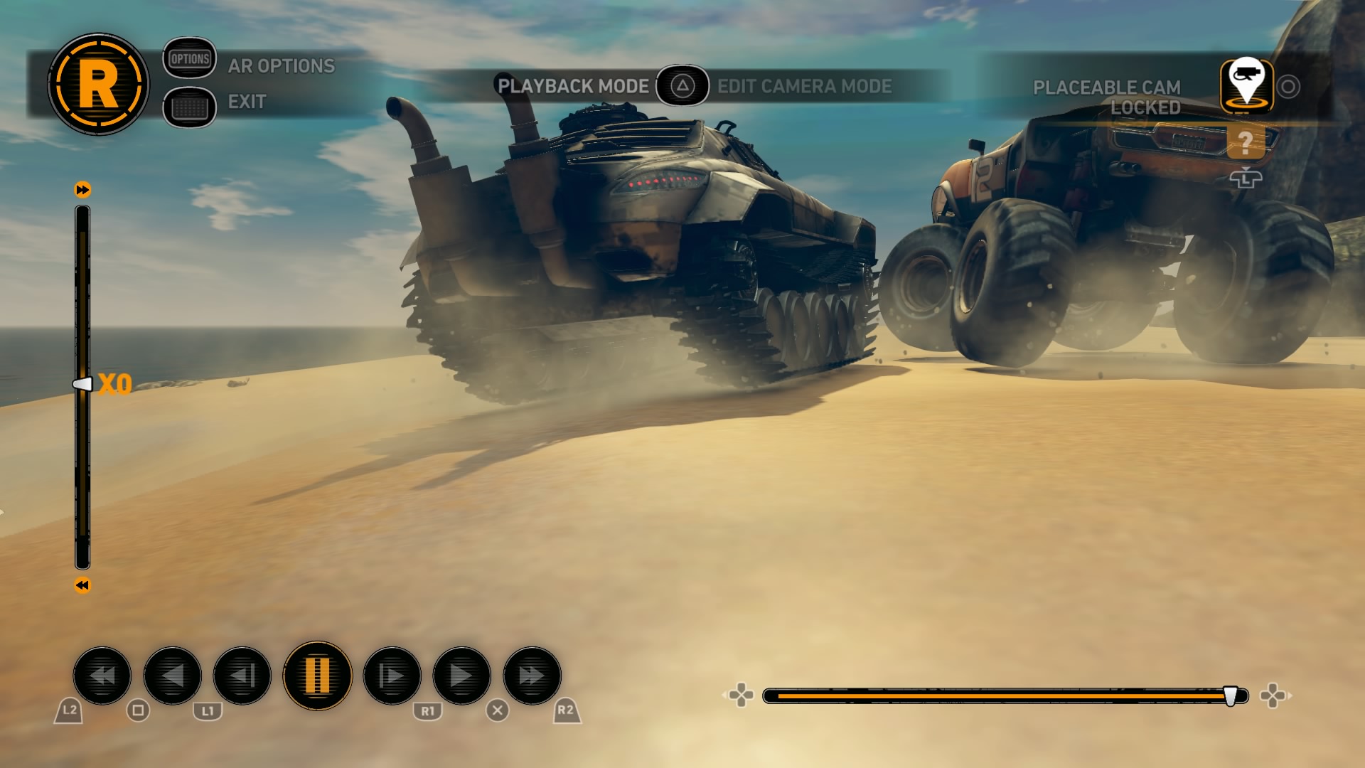 Jednym z najważniejszych elementów w grze są pojazdy. Wraca tu stara zgraja świrów w swoich wymyślnych stalowych potworach. Znajdziemy tu wszystko: od najeżonych kolcami samochodów sportowych przez karawan, samochód do drag racingu aż do tira, czy potężnego spychacza, a to i tak wierzchołek góry lodowej. Pojazdów mamy 31 i każdy z nich określony jest 4 statystykami. Są to prędkość maksymalna, waga, przyśpieszenie i siła uderzenia. Możemy je także ulepszać, z postępem w story odblokowujemy części. Musimy zbierać tokeny porozrzucane na planszach, żeby móc je zainstalować. Każdy samochód rozwijamy osobno, więc powodów do eksploracji nie brakuje. Ulepszenia rozkładają się tak jak kiedyś, na trzy kategorie: pancerz, moc silnika i siłę uderzenia. Zostając przy pojazdach możemy płynnie przejść do modelu zniszczeń. Tu jest naprawdę co pochwalić, jest to jeden z najlepszych modeli jaki można spotkać na rynku. Niszczyć i urywać możemy z samochodów elementy karoserii, wszelkie dodatki a la noże, kolce, czy piły, a także, co najważniejsze, koła. Co ciekawsze, możemy przeciąć nasze, jak i inne pojazdy horyzontalnie i wertykalnie na pół. Co lepsze, taką połówką możemy coś nadal ugrać. Dodatkowo możemy się naprawiać w każdym momencie za kredyty jak i cofać na ostatni bezpieczny grunt, niezależnie od tego jaką harmonijką się staliśmy. Przydaje się to nie tylko jak spadamy w przepaść, ale też gdy widzimy, że przeciwnik pcha nas na ścianę, co skończy się naszym zgonem.