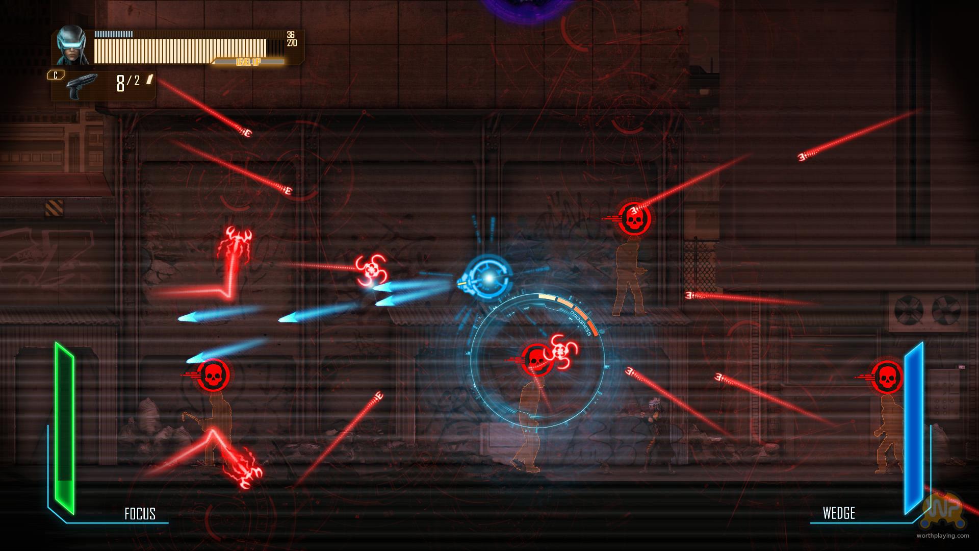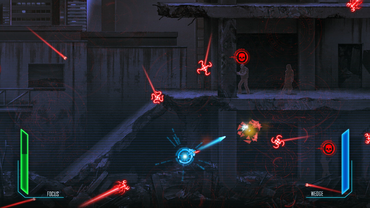 To jednak nie wszystko, co ma do zaoferowania Dex. W każdej chwili możemy przejść do świata bitów i brać udział w minigrze hakerskiej. Wtedy to produkcja zamienia się w zasadzie w prostą w założeniach strzelankę. Kierując kawałkiem kodu musimy zestrzeliwać zapory ogniowe, antywirusy, czy inne zabezpieczenia i starać się przejąć sektor danych. Jest to jednak na tyle absorbujące i odrywające od głównej gry, że aż przeszkadza i sprawia wrażenie nie do końca przemyślanego rozwiązania pod względem mechaniki, choć pasującego do realiów.