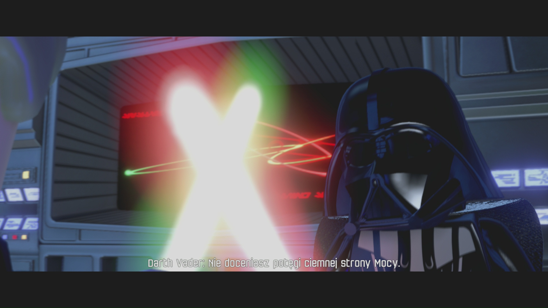 I to właśnie od tej jakości chciałbym zacząć, bo według mnie jest to największa zaleta tej produkcji i krok milowy na polskim rynku. LEGO Gwiezdne wojny: Przebudzenie Mocy jest bowiem pierwszą odsłoną serii, która może pochwalić się pełnym polskim dubbingiem. Do tej pory co najwyżej mogliśmy liczyć na polskie napisy, ale teraz nasze Lego ludki odzywają się w zrozumiałym dla wszystkich rodaków języku. Miałem jakiś czas temu okazję obejrzeć filmowe Przebudzenie Mocy z dubbingiem i cieszę się, że wszyscy aktorzy zaangażowani w ten projekt powrócili by nagrać dodatkowe kwestie do gry (zresztą w oryginale było identycznie). Dubbing wypada wyśmienicie i naprawdę dobrze się tego słucha. Aktorzy nie są sztywni, a ich głosy dobrane są odpowiednio do charakteru i w miarę zgodnie z oryginalnym głosem.