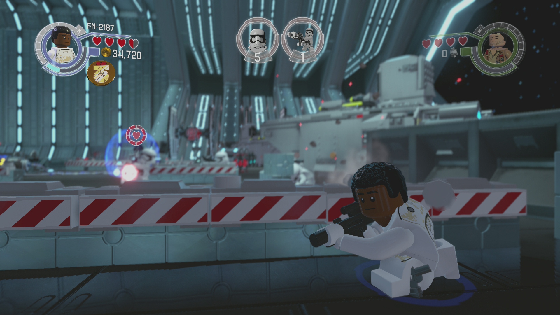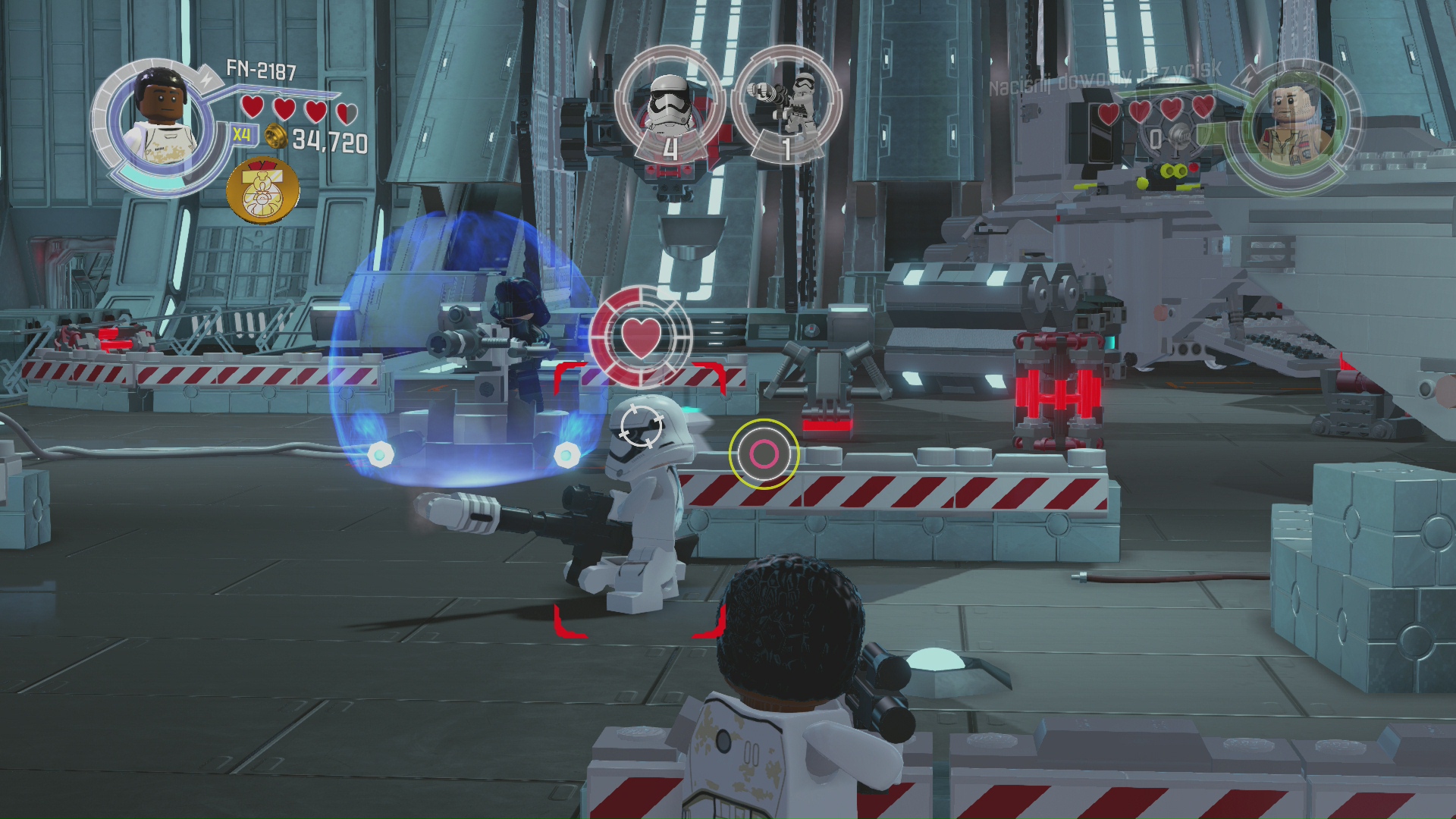 Skłamałbym jednak jeśli napisałbym, że gra jest wtórna. Pomimo zastosowania sprawdzonej formuły twórcy dodali kilka nowych elementów. Pierwszym z nich jest system chowania się za osłonami. Gears of LEGO? Jak najbardziej. System jest bardzo dobrze stworzony i nie odstaje od tego co znaleźć możemy w grach TPP. Nie możemy oczywiście przykleić się do każdej osłony, a jedynie do z góry wyznaczonych przeszkód i w wyznaczonych miejscach, ale jest to jednak ciekawe urozmaicenie. Jedyne co może przeszkadzać wprawnym graczom to fakt, że przy strzelaniu zza osłony celujemy lewą gałką analogową, zamiast prawą. Przyzwyczajenie robi jednak swoje i bardzo często o tym zapominałem przez co strzelanie wychodziło mi koślawie.