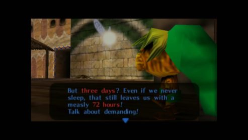 Na szczęście na początku dnia trzeciego odzyskujemy Okarynę, dzięki której po zagraniu Pieśni Czasu możemy cofnąć się o trzy dni. Po drodze poznać można jeszcze kilka trików na spowolnienie czasu. Po skorzystaniu z Okaryny tracimy jednak większość przedmiotów, poza tymi kluczowymi.