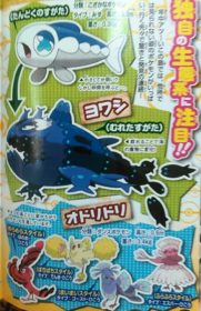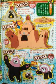 Wśród nowych Pokemonów pojawia się ryba typu wodnego nazwana Yowashi (w wersji Europejskiej nazwa będzie najprawdopodobniej inna). Oprócz tego mamy dwa stworki wyglądające jak zamki z piasku – Sunabaa oraz Sunadeshiro. Oba Pokemony są typów Duch / Ziemia. Ostatnim nowym stworkiem jest przedewolucja znanego wcześniej Beweara, nazwana Nuikoguma. Identycznie jak Bewear, jest on typów Normalny / Walczący.