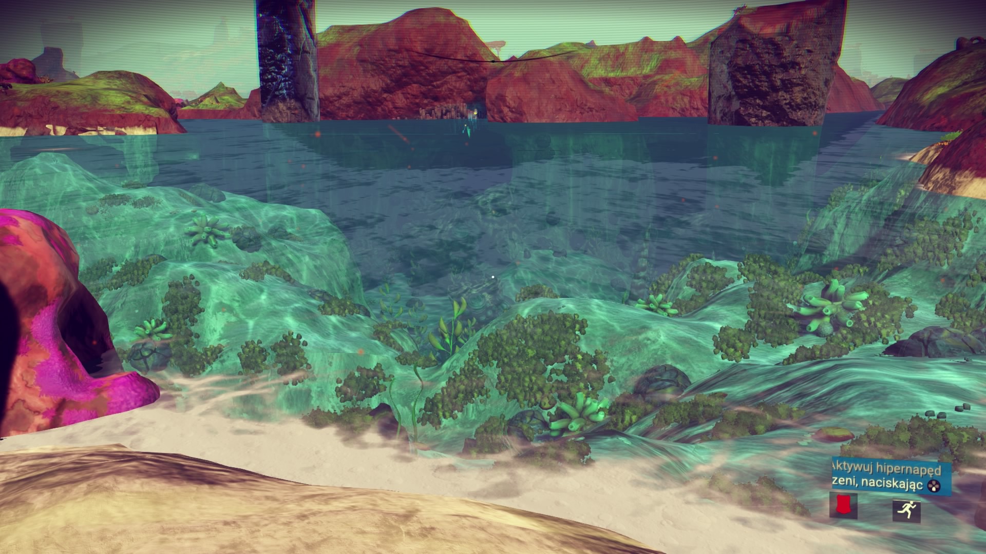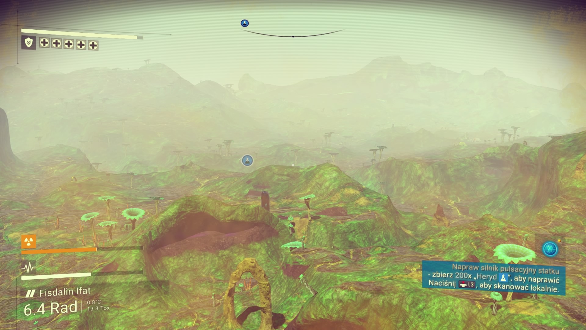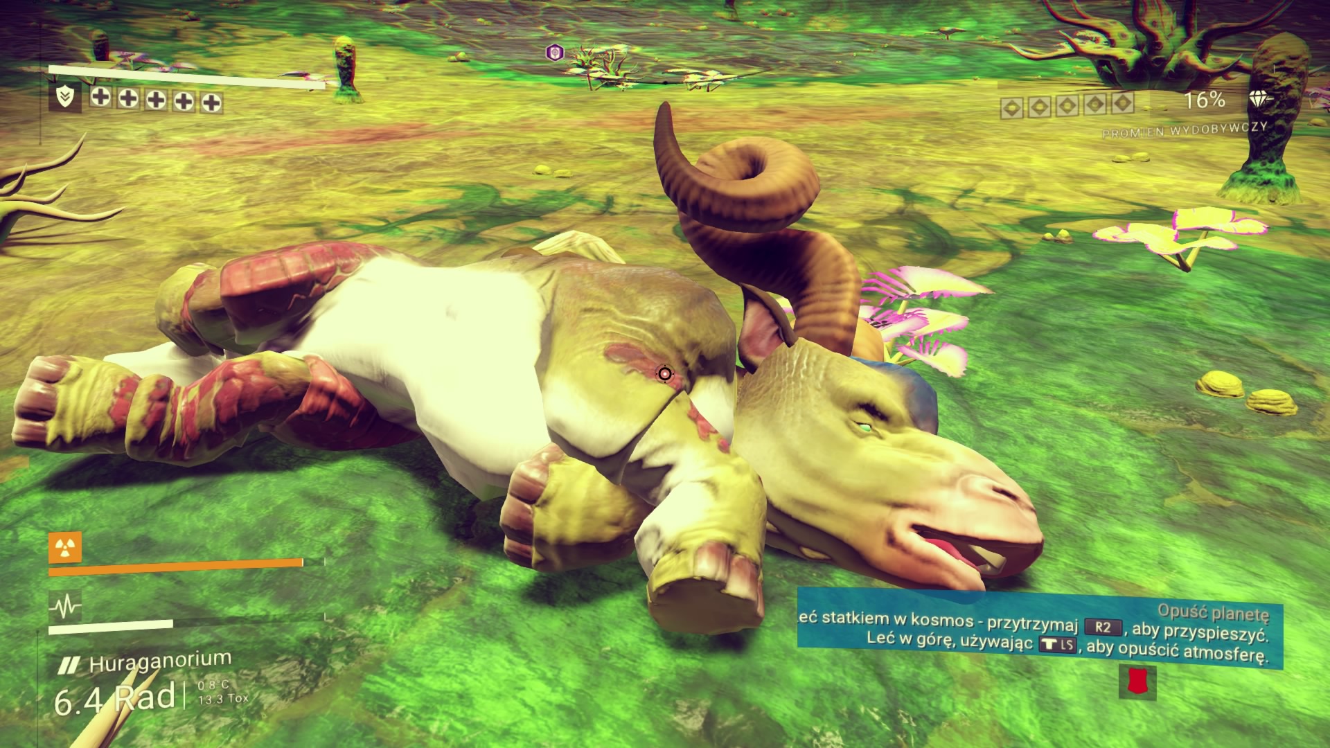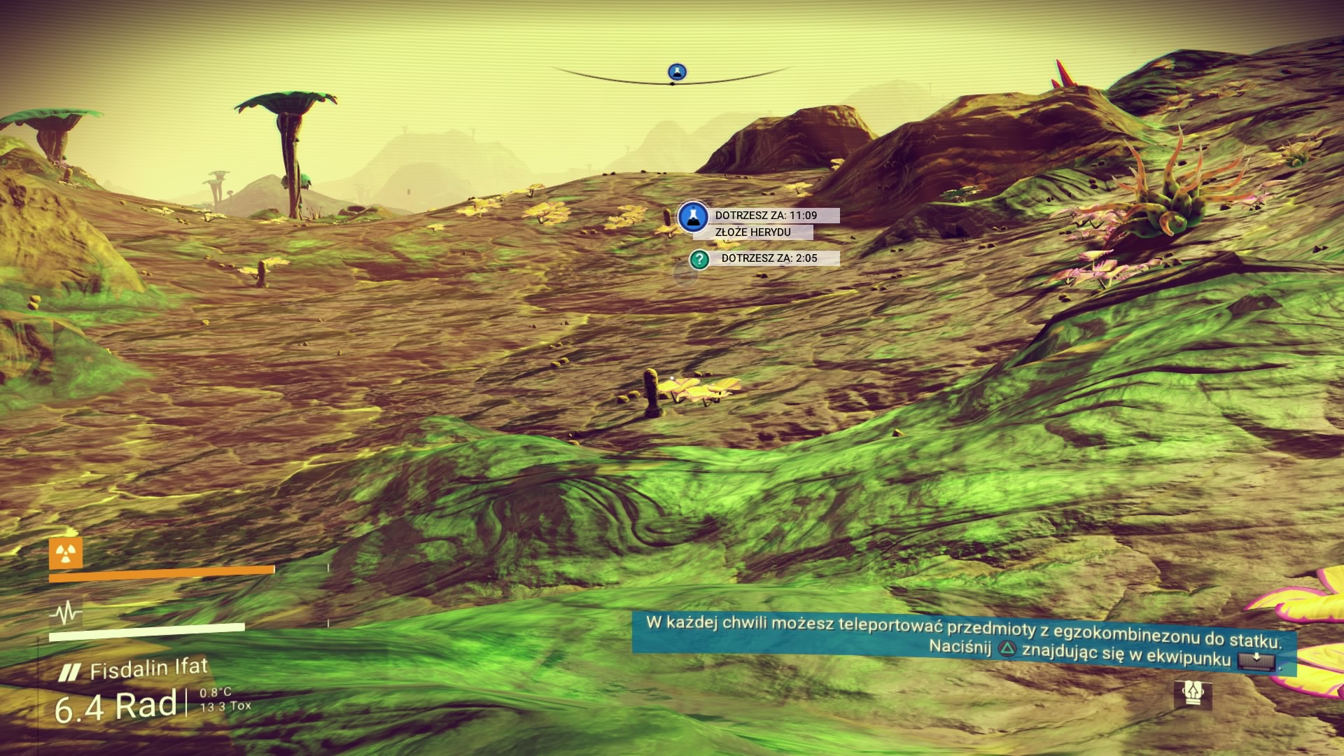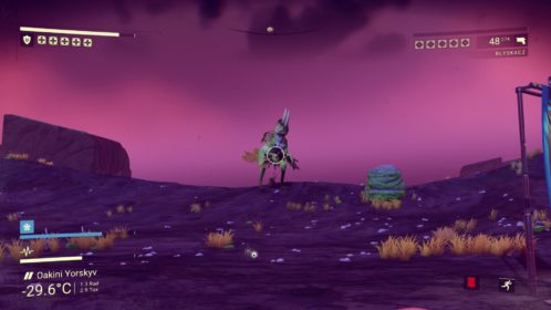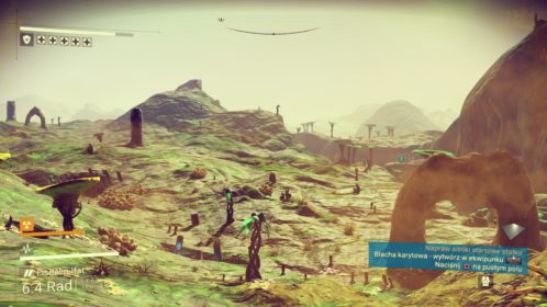 Moja przygoda rozpoczyna się na pięknej, zielonej planecie. Statek kosmiczny jest niestety zniszczony i to od jego naprawy muszę rozpocząć moją wyprawę do centrum kosmosu. Praktycznie z każdej rzeczy na powierzchni planety mogę wydobyć potrzebne minerały. Węgiel, glin, pluton – tego wszystkiego jest tutaj pod dostatkiem. Niestety jako początkujący podróżnik, nie wiem jeszcze, co będzie potrzebne, a co nie. Co więc podpowiada logika? Zbierz je wszystkie! Oczywiście, żadnych Pokemonów nie odnalazłem, jednak ochoczo rozpocząłem crafting wszystkiego, co tylko się dało. Równie szybko okazało się, że zapełniłem wszystkie wolne sloty na minerały w moim skafandrze oraz statku kosmicznym. No cóż, widocznie przesadziłem. Muszę robić to rozsądniej. W takim razie rozpoczynam podróż po planecie w celu znalezienia niezbędnego Herydu do naprawy pojazdu. Planeta jest piękna! Doliny, jaskinie, interesujące zwierzęta. Jeśli moja podróż będzie odbywać się po takich światach jak ten, to już nie mogę się doczekać! Po drodze odkrywam kolejne bazy, magazyny i inne miejsca, w których mogę dokonać zapisu stanu gry i odtworzyć energię. Muszę to robić regularnie, ponieważ mimo swojego uroku, planeta jest radioaktywna. Zdobywam niezbędny pierwiastek i rozpoczynam podróż powrotną. Regularnie muszę doładowywać energię skafandra oraz urządzenia do wydobywania minerałów za pomocą odnalezionych minerałów. Muszę także uważać na strażników (drony), którzy pilnują, aby planeta pozostała w nietkniętym stanie. Przyznaję, że są bardzo upierdliwi i to z ich powodu ginę pierwszy raz.