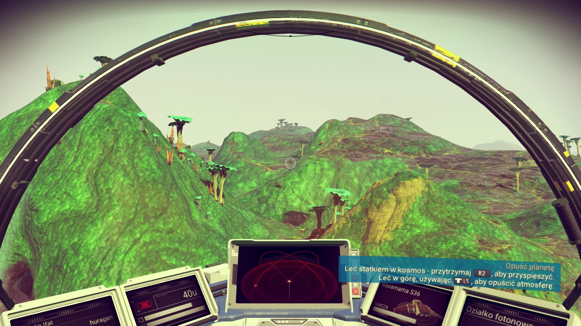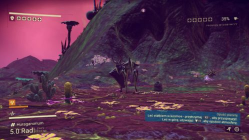 Zdobyłem wszystkie niezbędne pierwiastki do naprawy statku. Wszystkie systemy zostały uruchomione, wytworzyłem paliwo niezbędne do lotu. Cóż za niesamowity moment! Zaraz poderwę się do pierwszego lotu! Emocje są niesamowite. Pierwszy lot nad powierzchnią planety jest bardzo satysfakcjonujący. Jednak dostrzegam pewne nieścisłości. Statek pilotuje się tak prosto, aż pozostaje niedosyt. Nie mogę wykonać żadnych groźnych (ale przecież jakże efektownych!) manewrów. Autopilot pilnuje żebym nie zbliżył się zbyt blisko powierzchni planety. Jak mam więc przelecieć w kanionie krzycząc z zachwytu? Nie mogę. Może to i lepiej bo szybko dostrzegam, że mój wzrok jest bardzo kiepski. Wzgórza, drzewa oraz skały minerałów pojawiają się w zasięgu mojego wzroku w ostatnim momencie. Jeszcze bym się rozbił. No właśnie – nie mogę się rozbić! Dziwne. Jednak nie zwracam na to specjalnej uwagi, jestem zajęty odkrywaniem mojej planety. A jest to z pewnością „moja” planeta, ponieważ nadaję jej nową nazwę „Huraganorium”! Od razu zauważam, że nazwa ta jest głupia, jednak nie mogę już jej zmienić. Dziwne.
