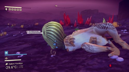 Znajduję się w nowym układzie planetarnym! Są tutaj dwie planety oraz księżyc jednej z nich. Ruszam więc odkrywać! Niestety nie udaje mi się dotrzeć na nową planetę. Zostaję zaatakowany przez wrogo nastawionych kosmitów. Mój statek nie jest X-Wingiem – poległem błyskawicznie. Za drugim razem docieram jednak bez przeszkód na powierzchnię planety. Ta niestety nie jest specjalnie urokliwa. Zdobywam tylko konieczne minerały i odlatuje. Na księżycu trafiam na złoto! Wydaję mi się, że będzie to cenne znalezisko więc zbieram wszystko, ile się da. Niestety międzyczasie ginę przez strażników – są strasznie upierdliwi. Kolejna planeta także nie grzeszy urodą, więc po kilku minutach ponownie skaczę do kolejnego układu.