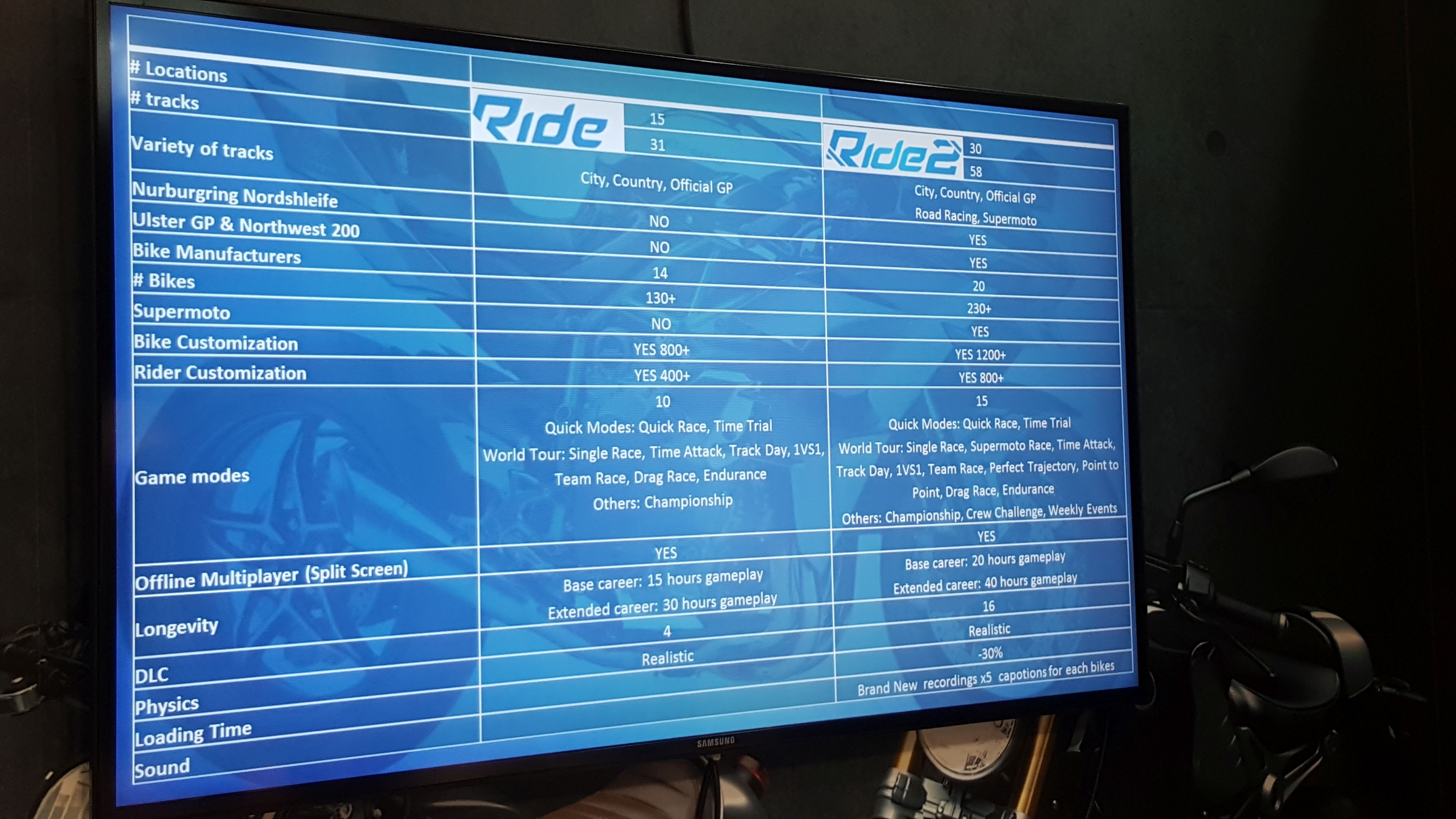 Na deser mamy jeszcze wzrost liczby samych motocykli. Do stajni RIDE 2 swoje maszyny wprowadza 6 nowych producentów. To z kolei oznacza podniesienie liczby o około 100 pojazdów, a z tym wiążą się dodatkowe opcje personalizacji zarówno samych motocykli jak i ich jeźdźców.