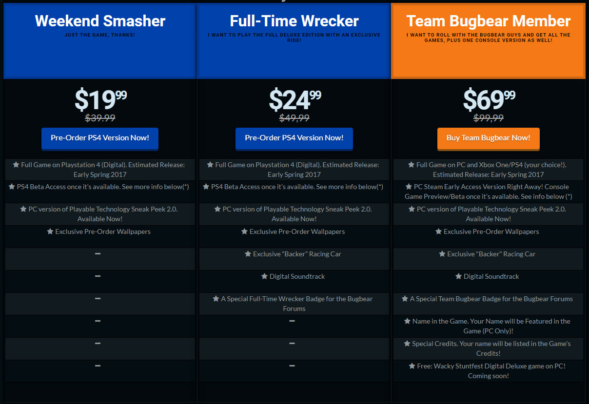 Duchowy spadkobierca Destruction Derby pojawi się nie tylko na PC ale również na konsolach. Wydawca gry Wreckfest, opublikował na swojej stronie informację, że gra pojawi się na PS4 i XO oraz, że wersja PS4 będzie dostępna wcześniej w formie Early Access dla osób, które złożyły zamówienie przedpremierowe na stronie Bugbear. Najtańsza wersja konsolowa to jedynie $19,99. Produkcja jest już od kilku lat dostępna za pośrednictwem Steam Early Access na PC.