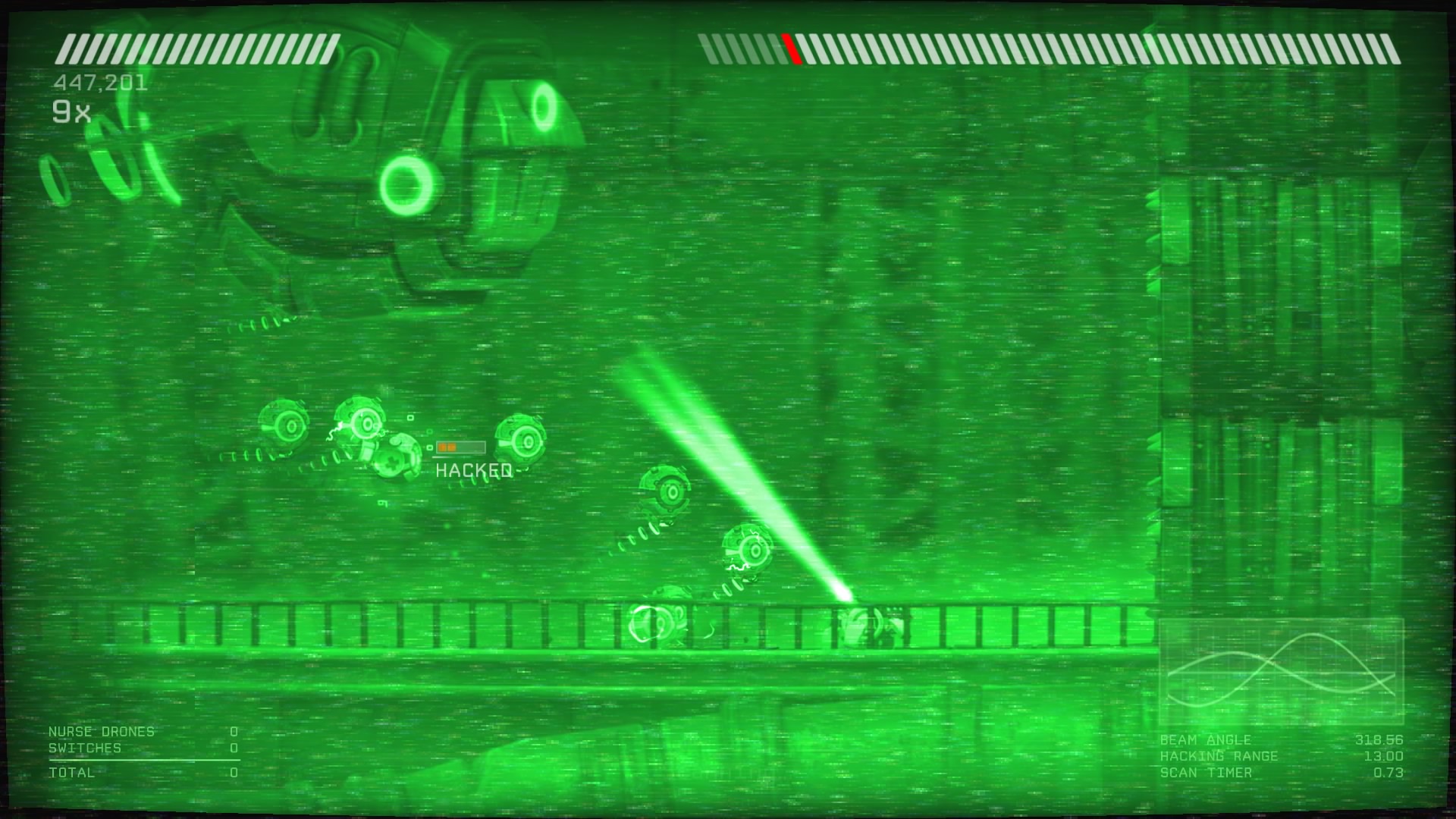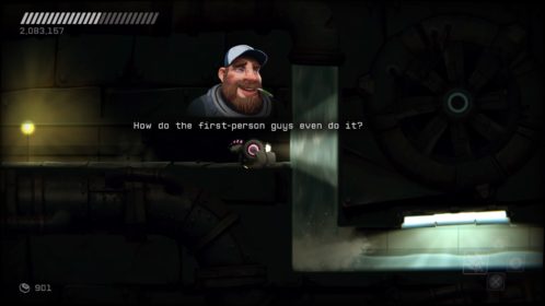 W grze możemy też hakować panele kontrolne drzwi, czy mechanizmy i wrogie boty, a nawet przeciwników. Proces ten nie jest skomplikowany. Polega na włączeniu filtra ekranu, najczęściej podskoku i naświetleniu obiektu, który chcemy, żeby stanął po naszej stronie. Nie jest to element wpływający w dużym stopniu na rozgrywkę, raczej ją uzupełnia niż stanowi jej trzon. Przejęci przeciwnicy otwierają nam zamknięte przejścia, taranując je, leczą nas lub strzelają razem w nami w kierunku, który wskażemy. Nic odkrywczego.