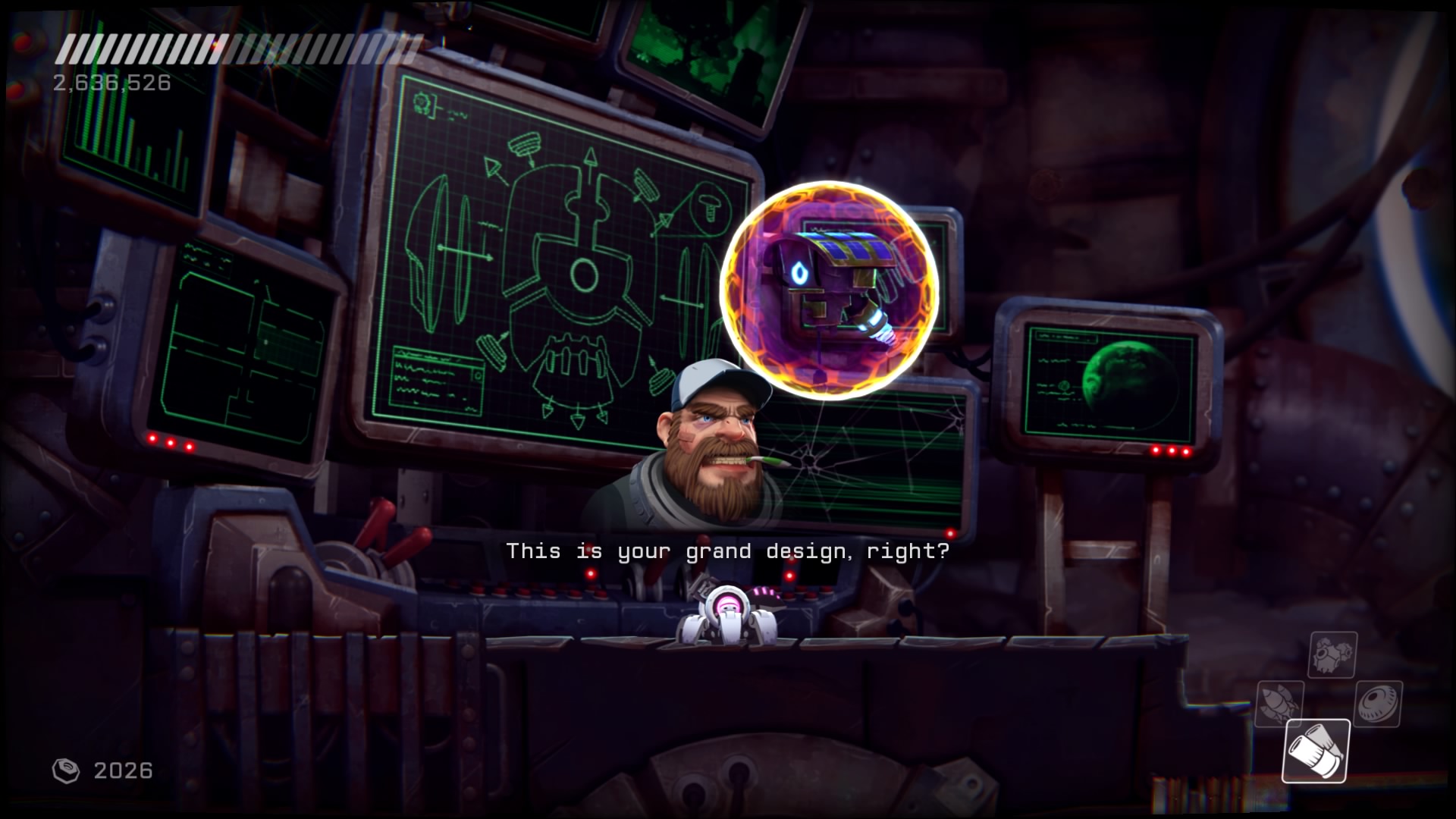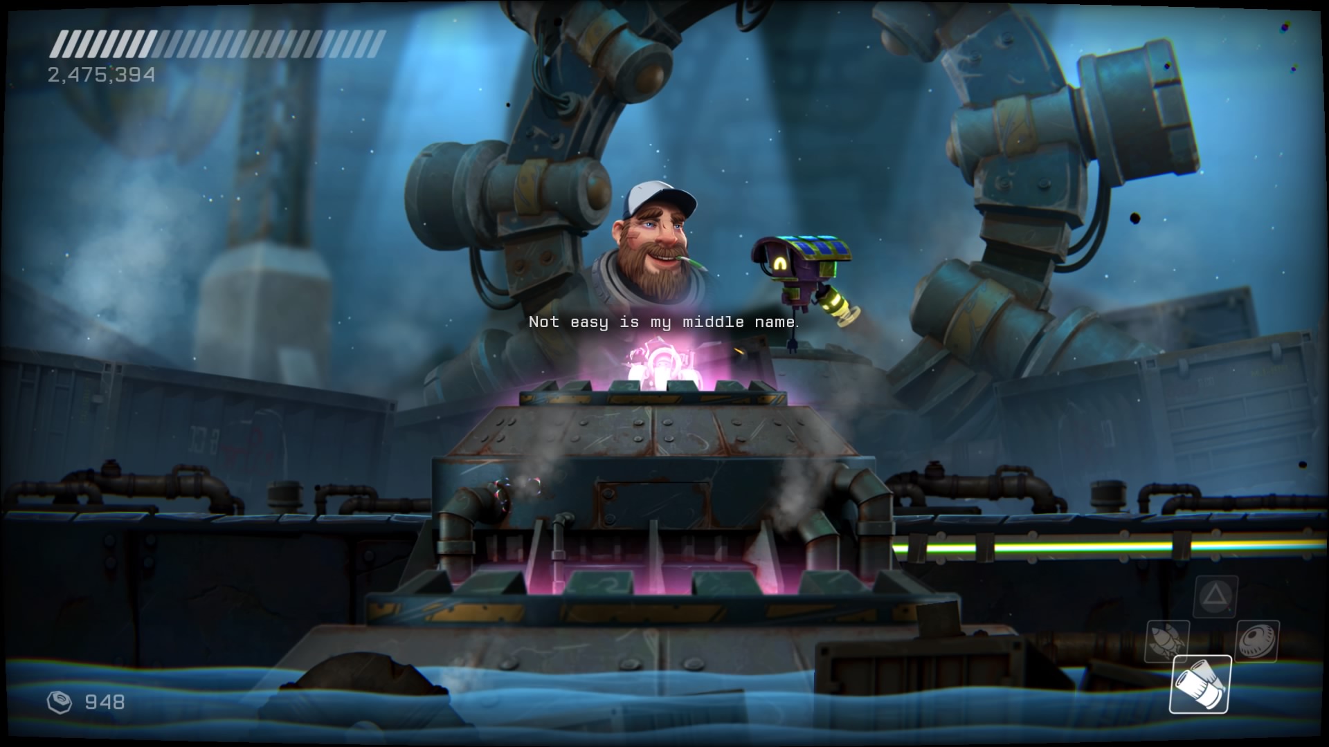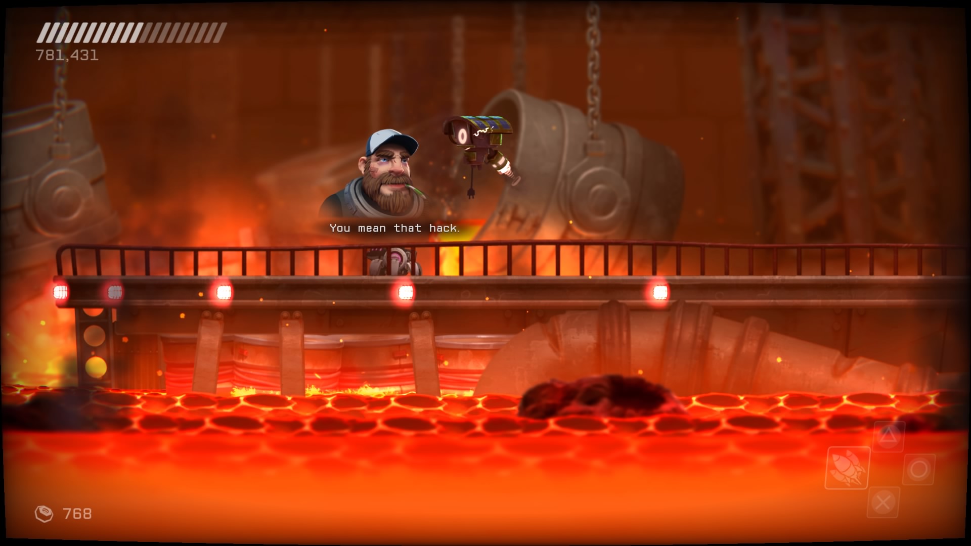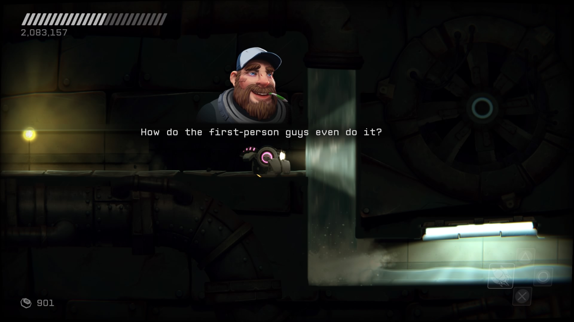 Rozgrywka z grubsza polega na poruszaniu się naszym robotem, strzelaniu i hakowaniu przeciwników, ale wszystko to wymaga małpiej zręczności i wyrobienia sobie odruchowych zachowań.Dostajemy mobilnego robota sterowanego przez naszego grubego rednecka z wnętrza maszyny. Możemy wykonywać podwójne skoki i strzelać w 360 stopniach. Są też fragmenty, gdzie jesteśmy pod wodą bez możliwości oddania strzału, jak i takie, gdzie latamy swobodnie bez działania grawitacji. Nasz statek możemy ulepszać w określonych miejscach, nie ma tu rozbudowanego systemu rozwoju. Rozwijać możemy naszą energię, moc przyciągania śrubek (waluta w grze) i zakupić 4 dodatkowe potężniejsze ataki. Te ostatnie różnią się od siebie znacząco. Mamy samonaprowadzające się rakiety, wielką strzelbę, odbijające się od ścian granaty, czy powodującą spięcie u przeciwników kulę. Niestety, ataki te wymagają zebrania amunicji wypadającej z wrogów, a jednocześnie możemy mieć przy sobie tylko jeden taki strzał. Co gorsze, dla wszystkich broni jednocześnie, co wymaga dodatkowej poprawki w taktyce. Statek możemy też leczyć wypadającymi z wrogów paczkami energii.