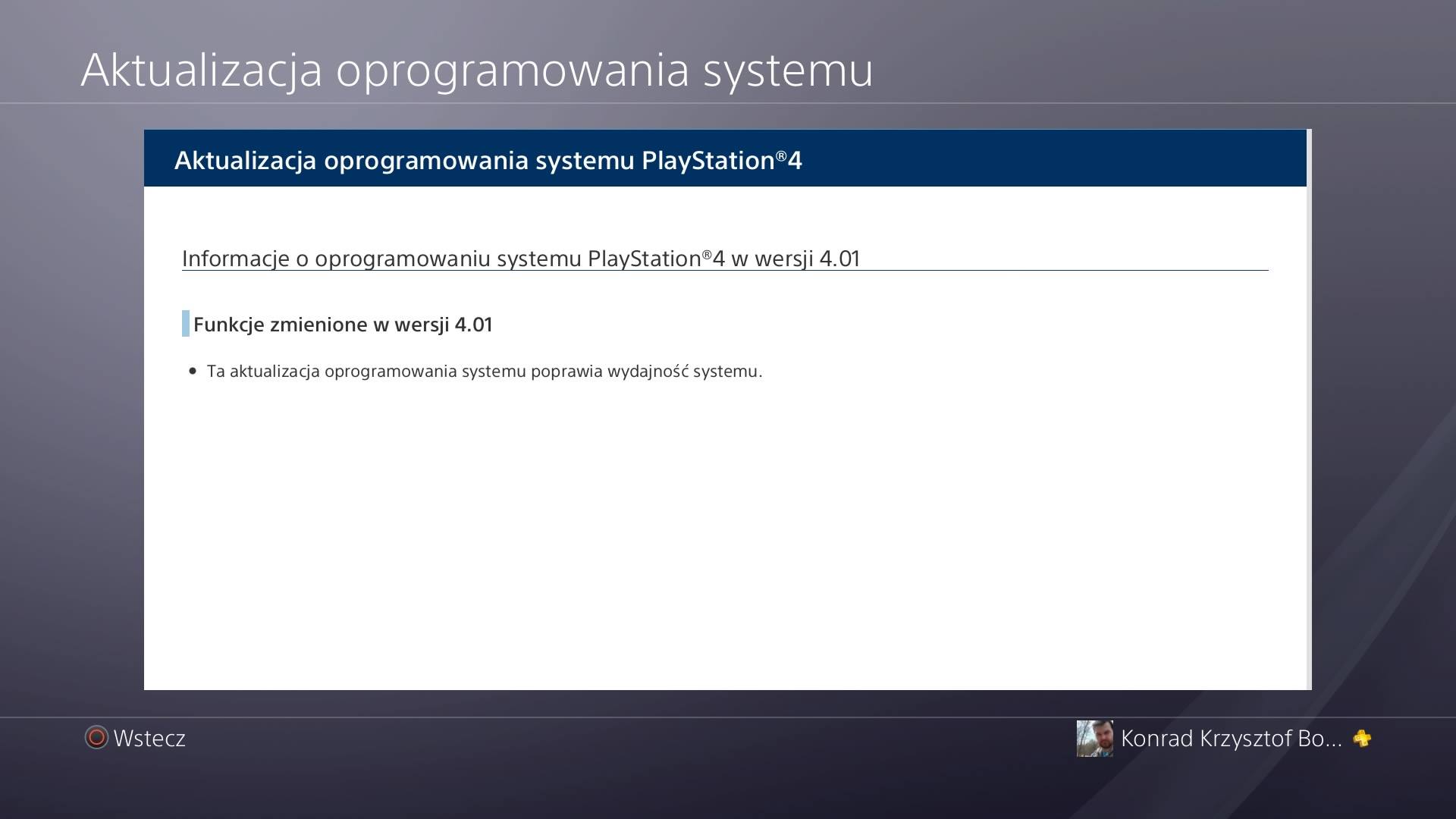 Poniedziałek rozpoczyna się od skromnej aktualizacji najnowszego softu w PS4.