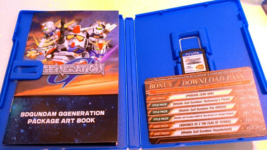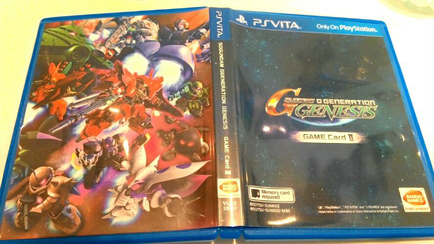 Sony prawdopodobnie nie przewidziało, że kiedykolwiek zostanie wydana gra na PSV, która będzie wymagała dwóch kartridżów, więc nie przewidziano również odpowiednich pudełek. SD Gundam G Generation Genesis jest na tyle unikalnym produktem, że jest sprzedawany w dwóch pudełkach, otoczonych kartonową obwolutą (wygląda to bardzo podobnie do dodatków do Wiedźmin 3 w wersjach z kartami).