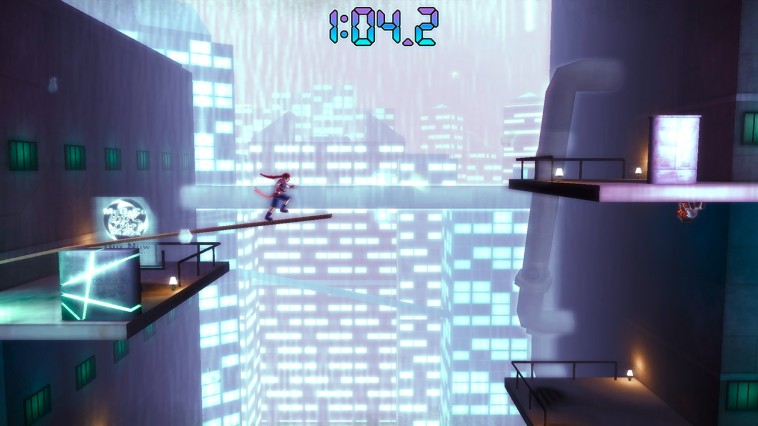 Pod względem rozgrywki Ninja Pizza Girl jest platformówką, łączącą w sobie cechy klasycznych tytułów tego gatunku z elementami parkouru. W każdym z etapów otrzymujemy określony limit czasu, w którym musimy donieść jedzenie do kupujących. Cała gra polega więc na ciągłym biegu do kolejnych klientów po mało ciekawych planszach oraz sprawnym pokonywaniu napotkanych po drodze przeszkód tak, by osiągnąć najlepszy czas. W pobijaniu rekordów pomogą nam różne umiejętności bohaterki – oprócz standardowego biegu i skakania potrafi ona także odbijać się od ścian, wspinać się po rurach, czy też prześlizgiwać się pod różnymi obiektami.