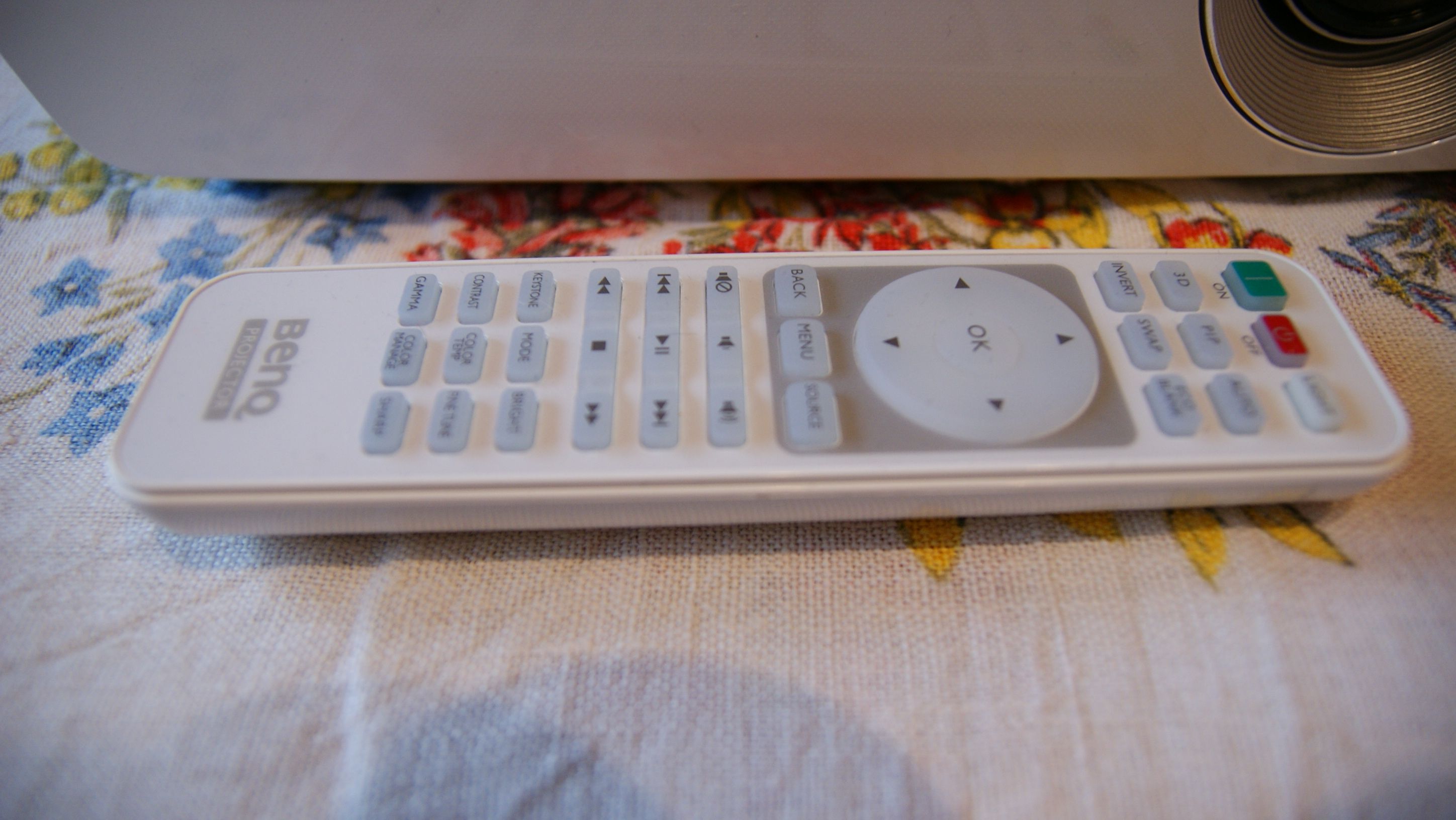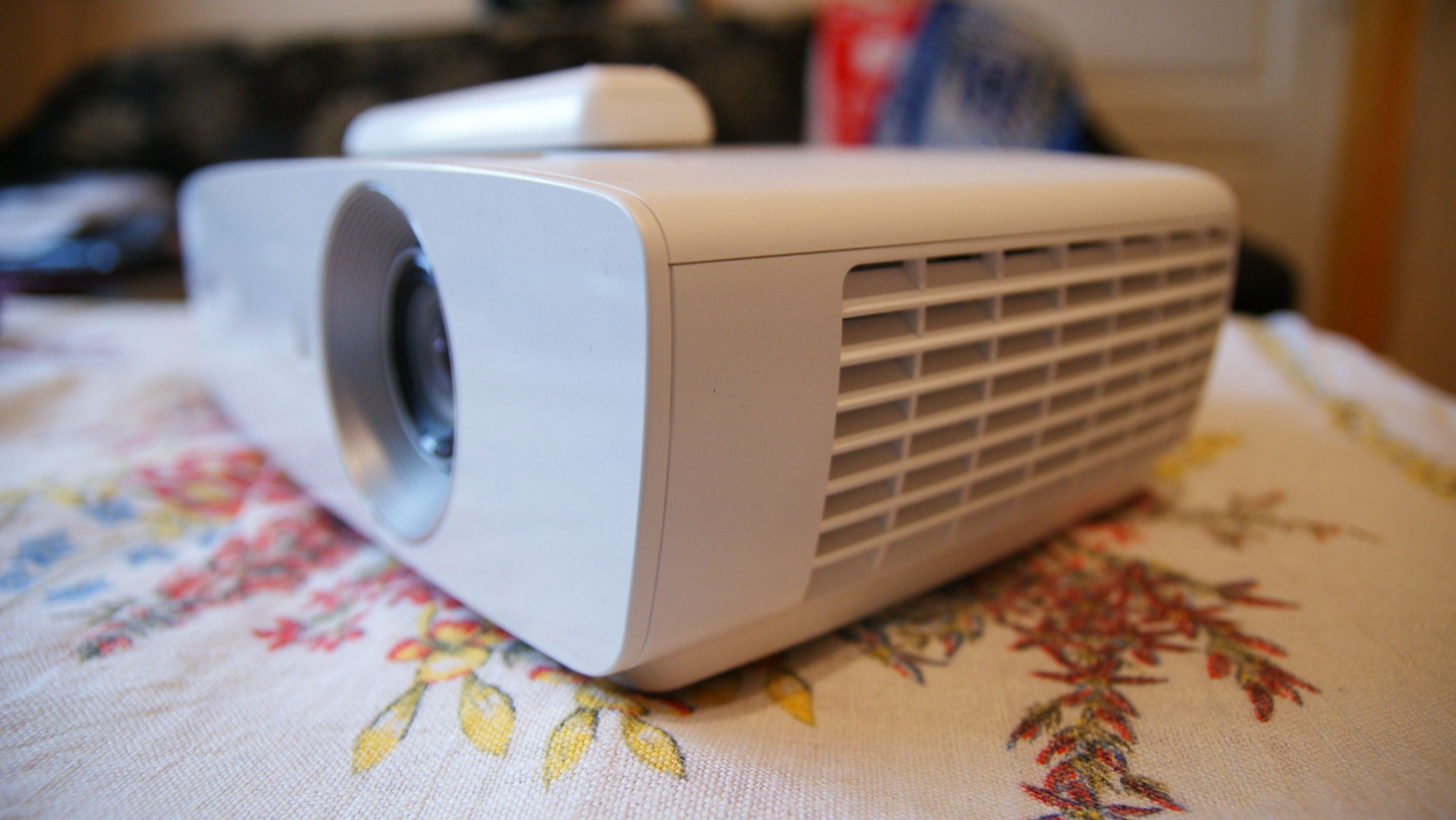 Projektor ma ciekawą funkcję, nazwaną „keystone”. Polega ona na tym, że możemy sobie położyć projektor nawet na niskiej ławie, coś pod niego podłożyć, tak, aby był ustawiony pod kątem i obraz wyświetlany był np. pod sufitem. Mimo, że poświata będzie miał kształt trapezu, to wyświetlany obraz z projektora zostanie automatycznie wyrównany.