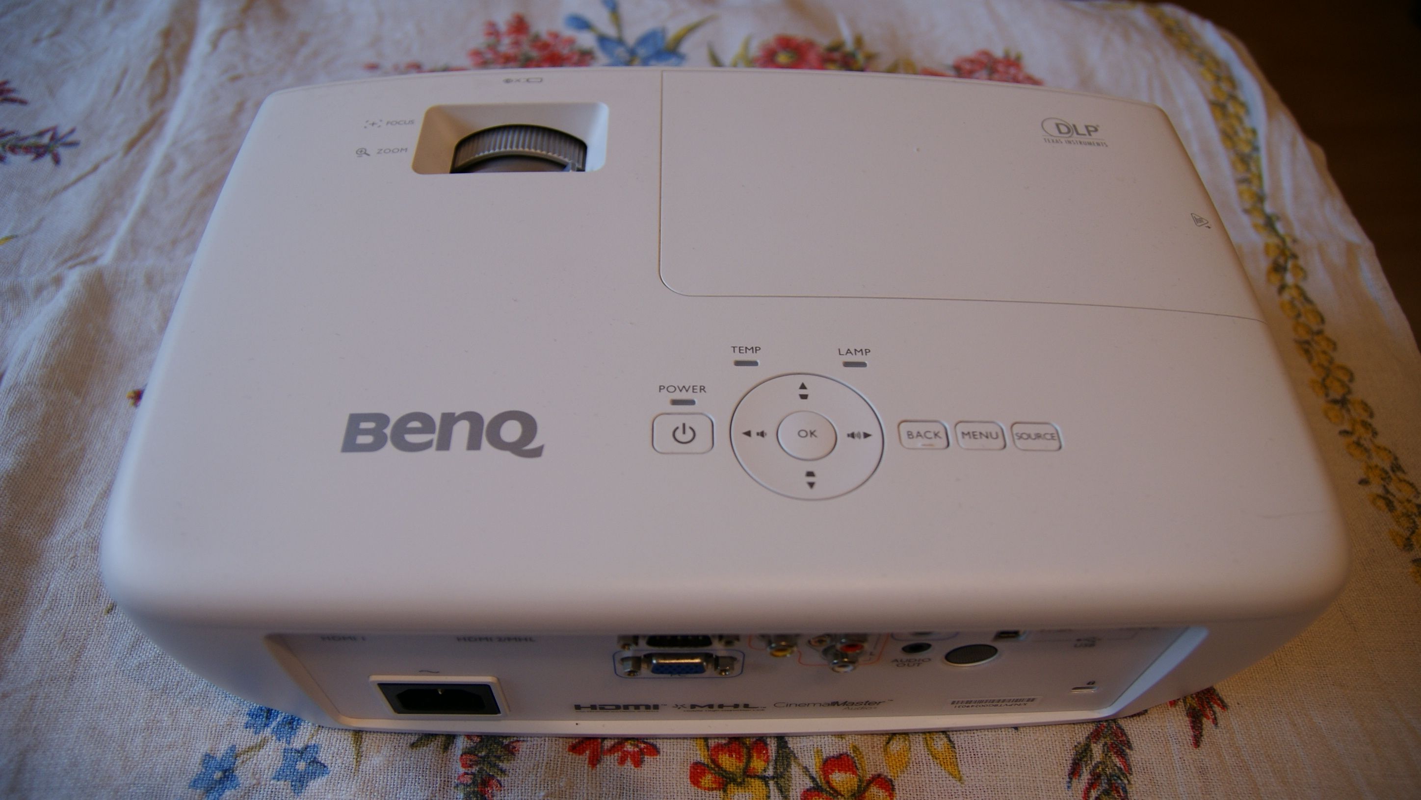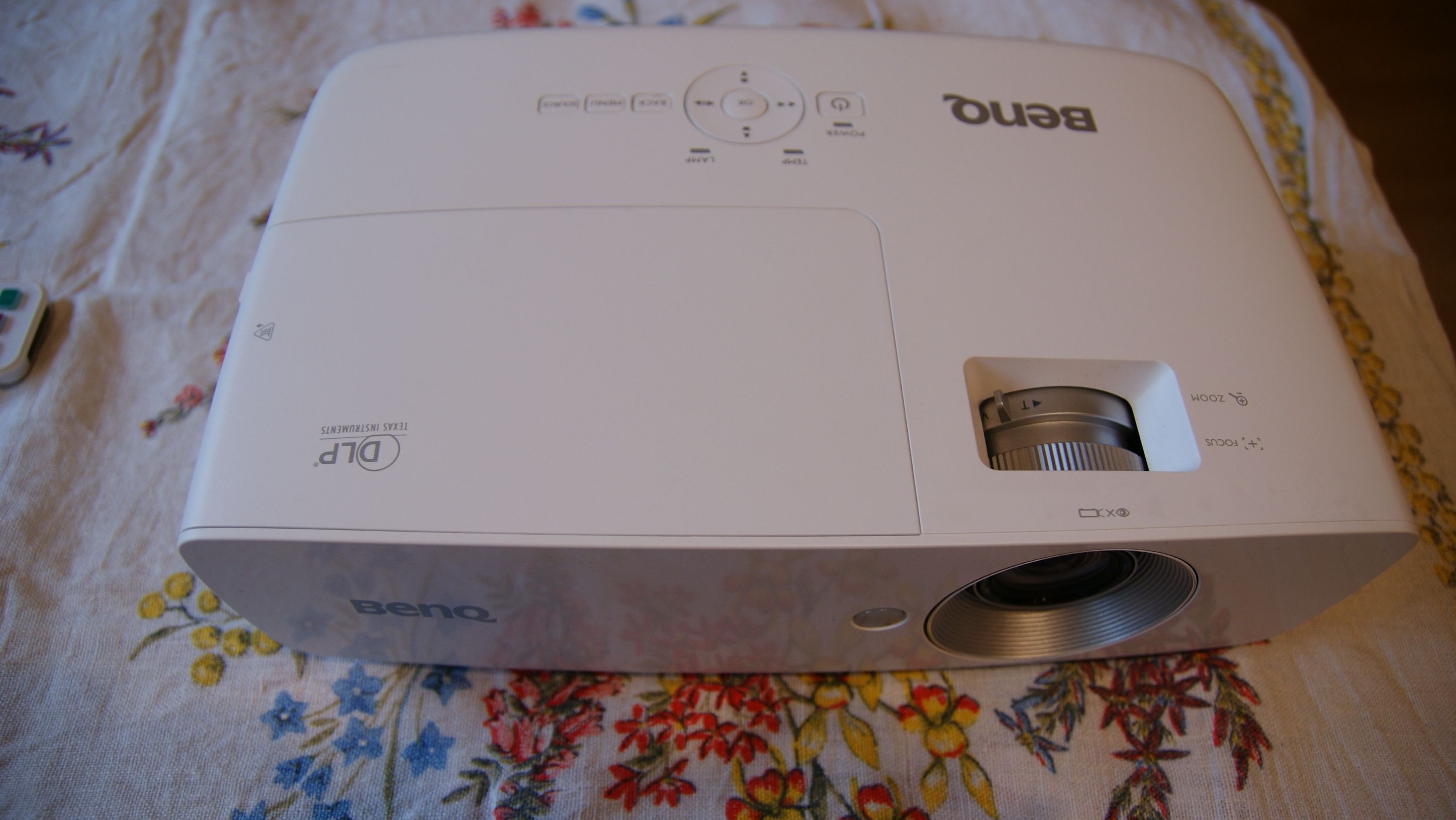 Projektor BenQ W1090 wyświetla obraz w natywnej rozdzielczości 1080p. Z odległości 2.5 metra jest w stanie rzucić na ścianę obraz odpowiadający 100 calom. Urządzenie nie jest duże i nie jest ciężkie, waży około 3 kg. Obudowa jest cala plastikowa, ale nie odniosłem wrażenia, że jest to budowa kiepskiej jakości. Na górze obudowy zostały umieszczone przyciski, które pozwalają sterować urządzeniem, a także pierścienie, które pozwalają regulować rozmiar wyświetlanego obrazu oraz jego rozmiar. W zestawie jest także podświetlany pilot.